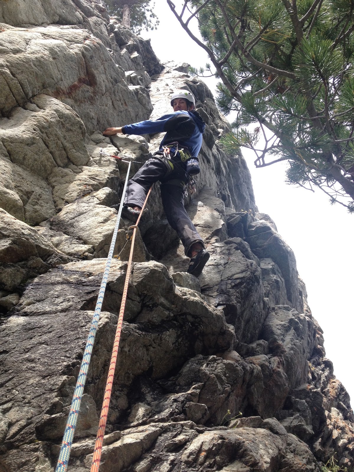 Against all the odds, we managed to get ourselves between the clouds, feel a bit of sunshine and even get up a couple of nice pitches of rock climbing! After scanning a few weather forecasts, we nipped into Valdret da Morteratsch. There were black clouds looming everywhere, but somehow, not in our chosen valley! To air on the side of caution, we chose Morteratsch as the climbing is only a short distance from the car park. With the weather looking like it was closing in, we got straight on the first route we came across. We did get caught out slightly as a shower blew through, but it dried off within 20 minutes and we were soon able to get back on some freshly dried rock!