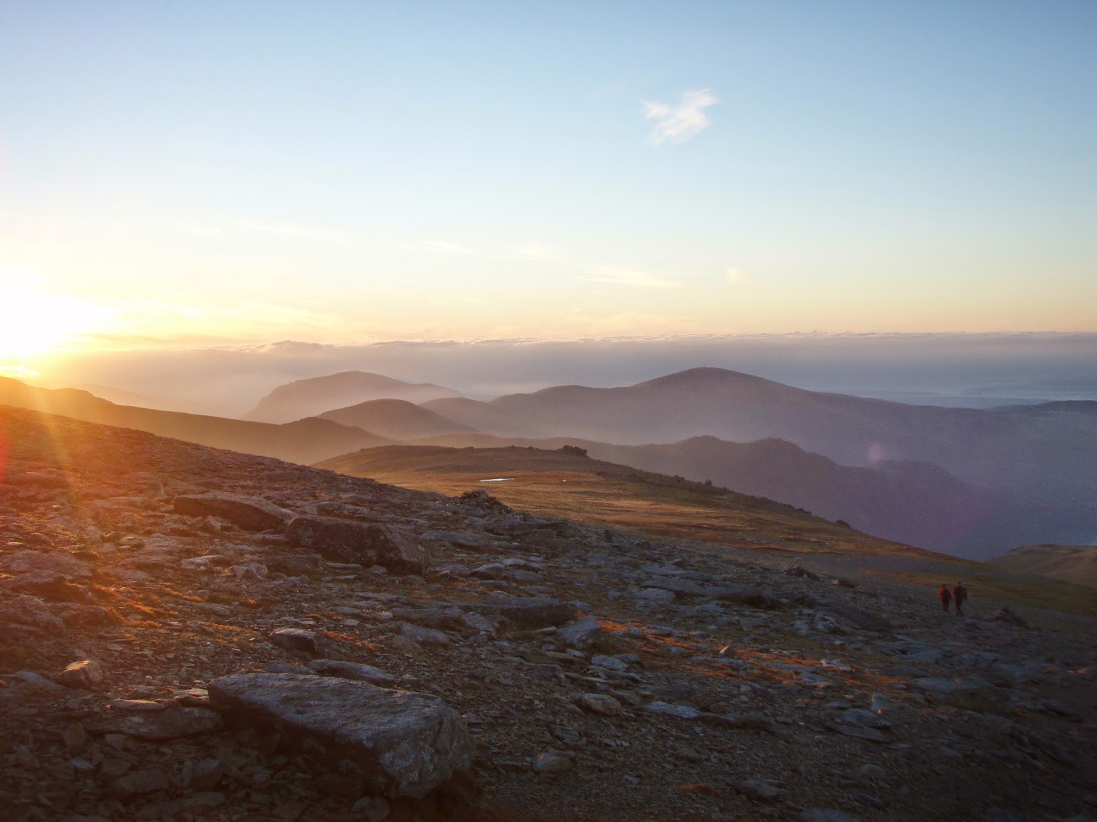 And if that wasn’t enough, I then carried on to summit Glyder Fawr where the views over towards Snowdon and the setting sun were mind bending. There was a huge mass of cloud over to the south, but the summits were all clear. Carrying onwards, I descended a bit, but then in order to stay in the evening light a little longer, carried on up to Y Garn, where I stayed until the sunset faded away. From there it was straight down the ridge. I got my head torch out for the last part and to help navigate through Tin Can Alley and was soon back to the van. Unbelievable views, with the mountains to myself – I saw only two other people once I left the Idwal path!