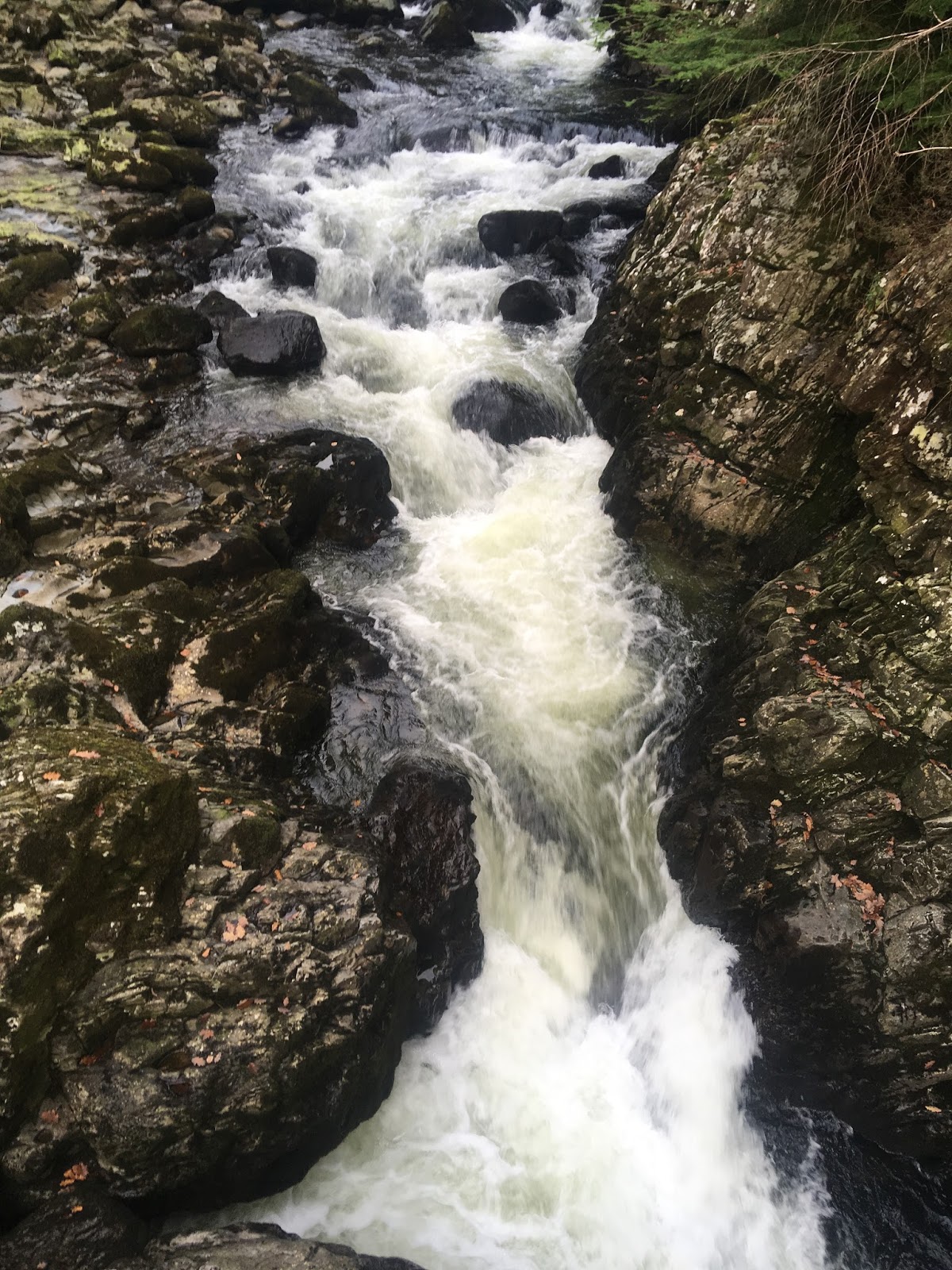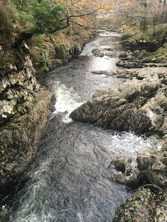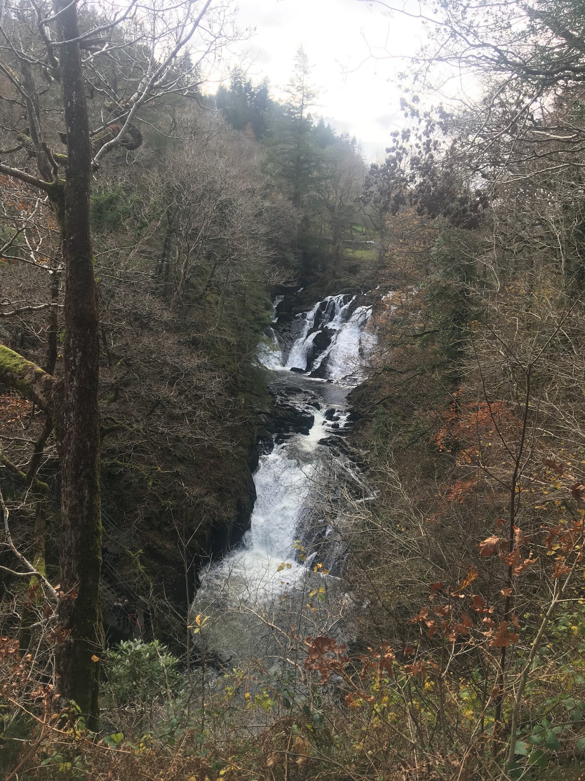 It’s a beautiful and dramatic walk along the river banks of the Llugwy and then up along the cliff edge above the famous Swallow Falls and then into the forest.
