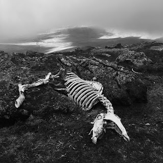 The eeriness of walking in the mist on your own was compounded by passing the skeleton carcas of a wild pony. It looked like a prehistoric dinosaur.