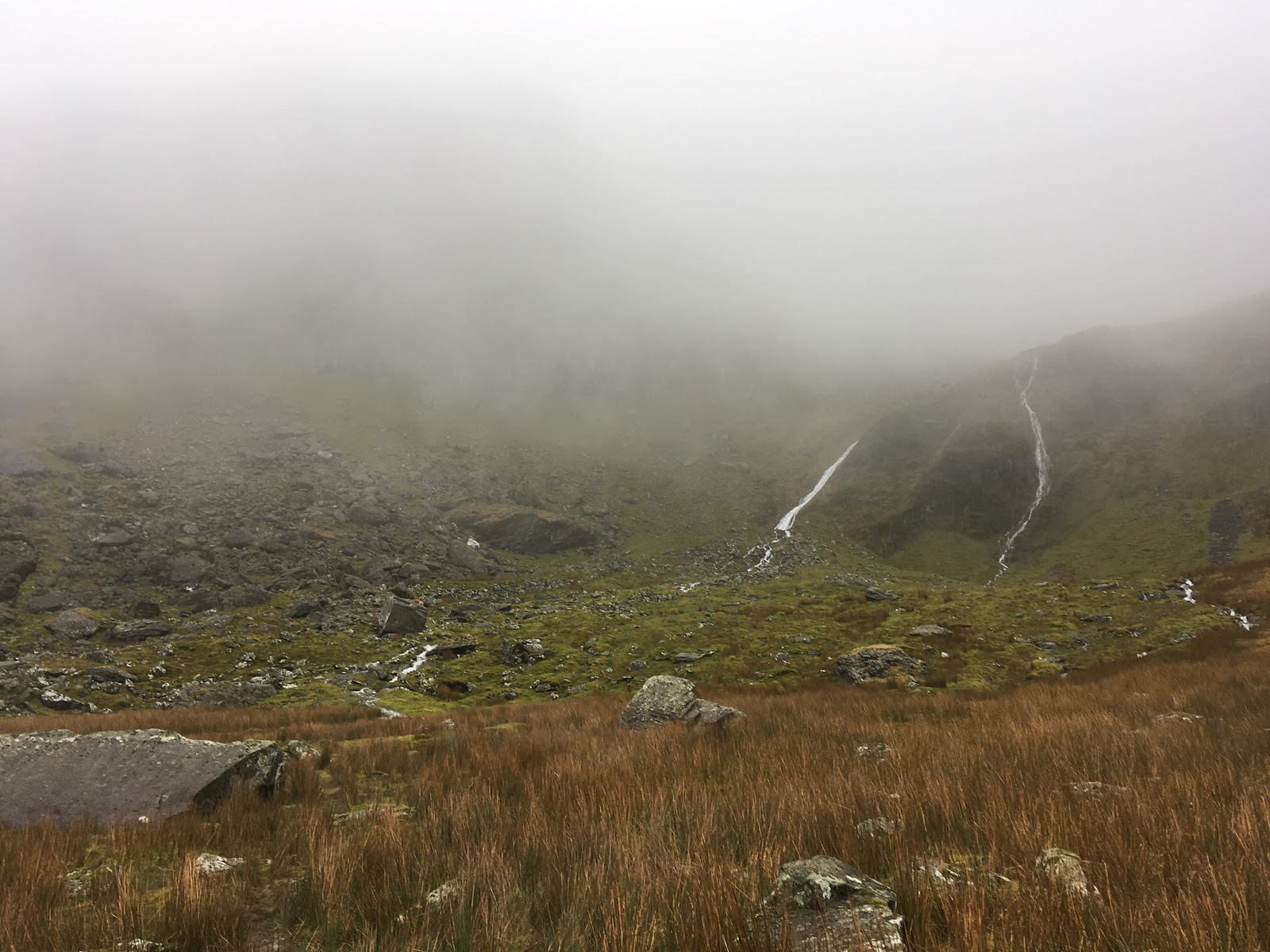Water was literally pouring from the mountain and the ground underfoot was completely saturated, thanks to heavy rain and melting snow. I was soon up into the mist and hidden from the world.