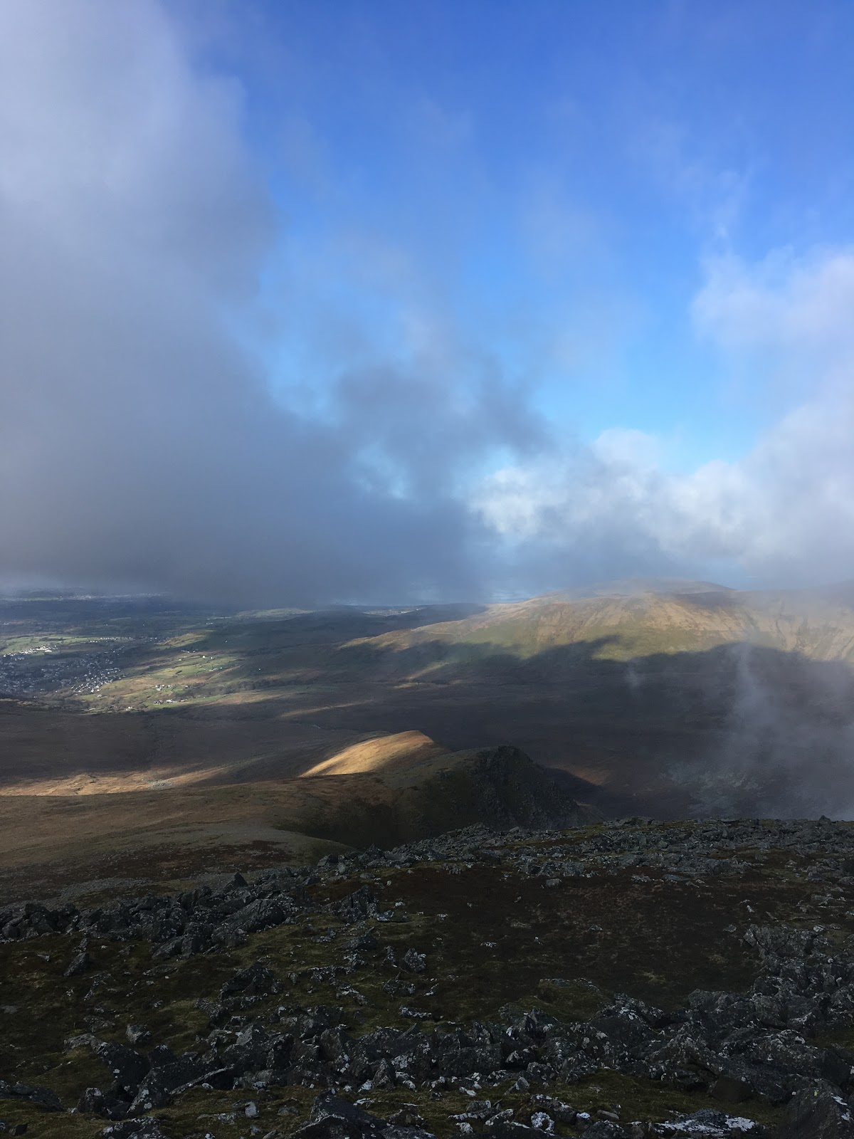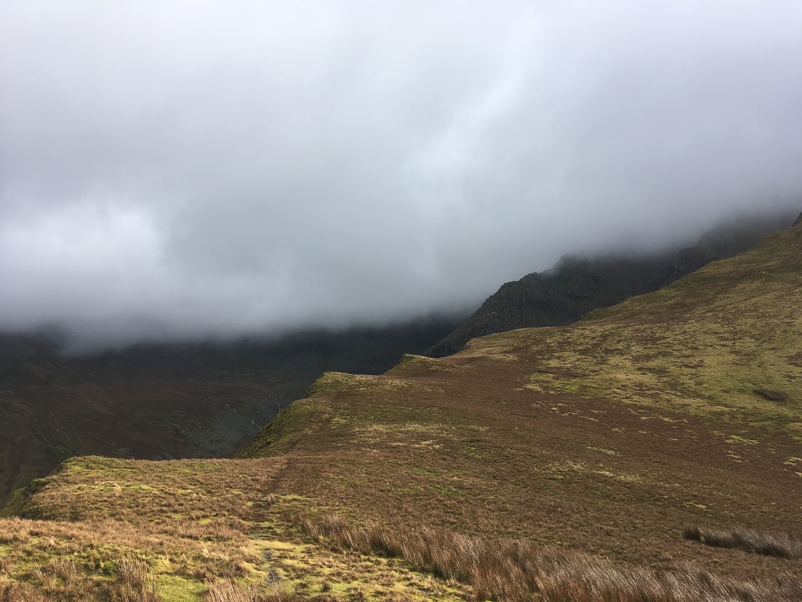 The mists began to lift as I lost height. Travelling as fast as I could, I descended while watching the new views unfold.
