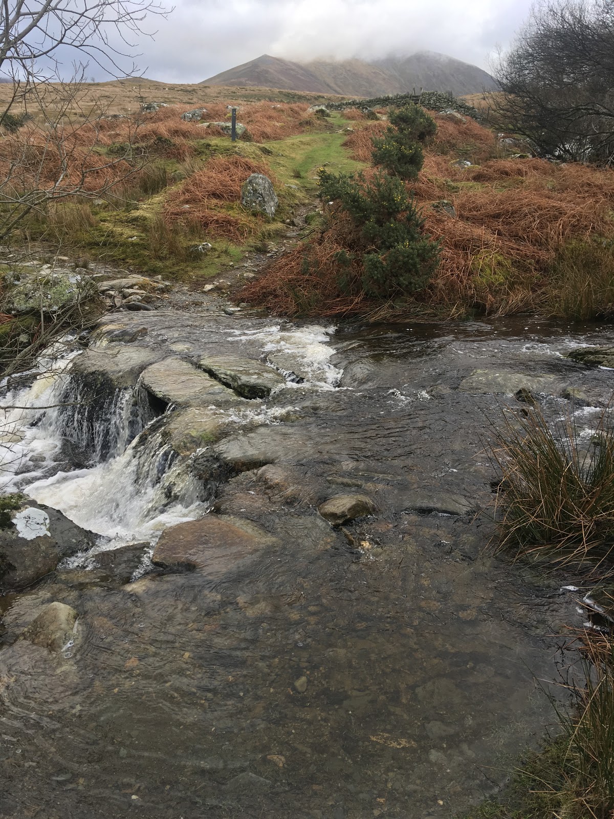 Back at the stream, the levels had dropped as predicted and I was able to cross with dry feet, although the outside material of my boots were already completely saturated.