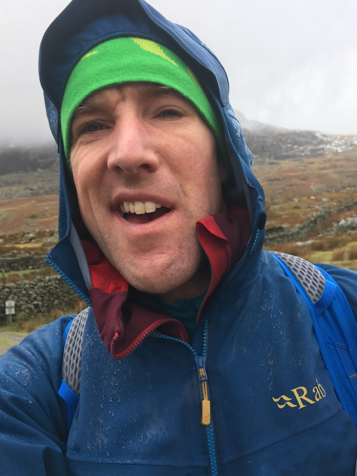 After almost scrapping all mountain based plans and catching a lift to London with Clare, I decided to make the best of the situation and give some of the Rab gear a proper testing. The Rab ‘Kinetic Plus’ is billed as a waterproof softshell and to be quite honest, when I first tried it out, I was very dubious that it would provide any protection from the rain. Well since using it, I’ve been proved firmly wrong and it survived the rigours of today’s tests with flying colours. Although I was only out for a morning, it rained continuously and I was sweating hard the whole time I was out. Arriving back at the van in the early afternoon, was completely dry underneath and very impressed.