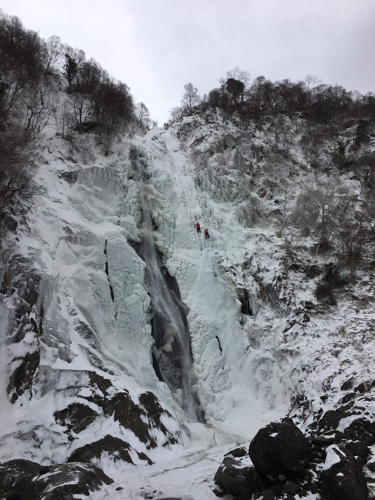 And most amazingly of all was later in the day, when a friend sent this photo of Aberfalls, on the northern edge of Snowdonia! Spot the climbers on the right-hand side!