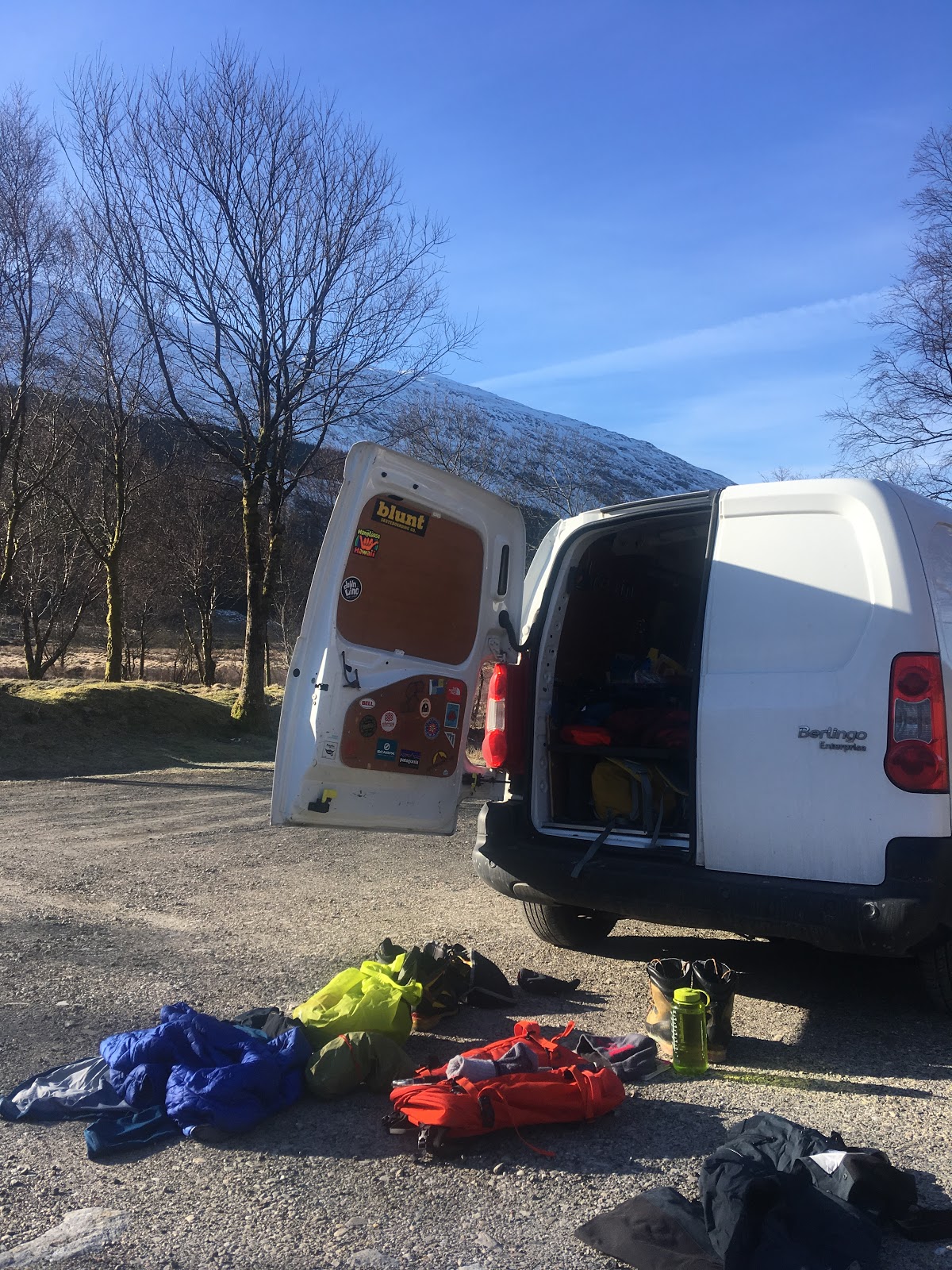 In Glen Orchy, I planned to climb the Munro Ben Lui. I sorted out my kit and munched on a crusty croissant while sorting my gear.