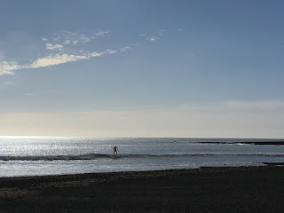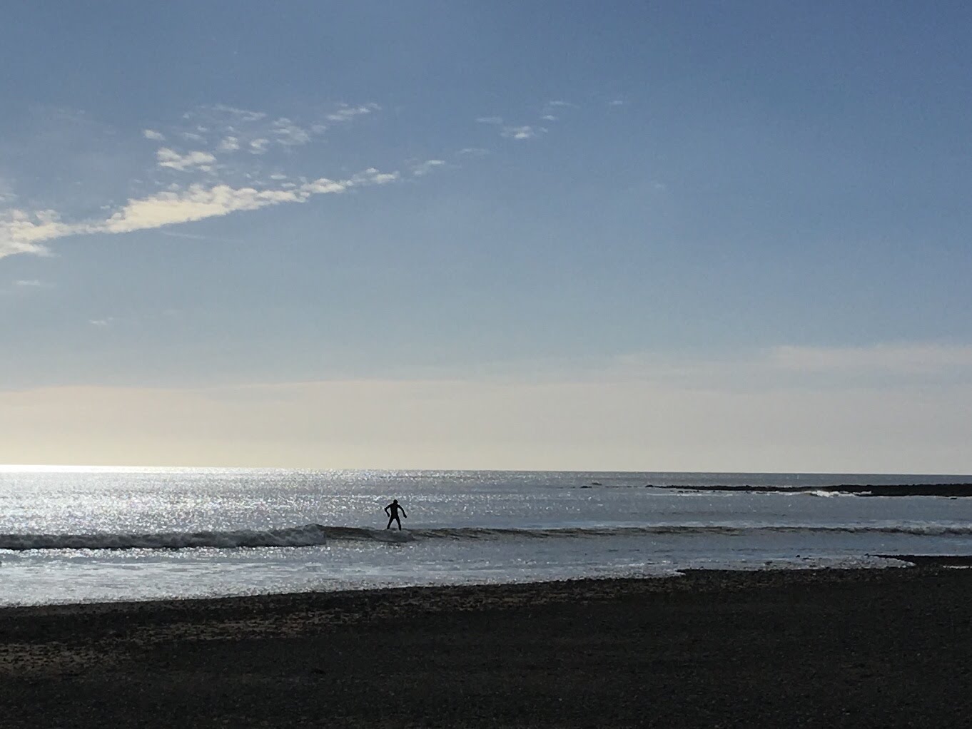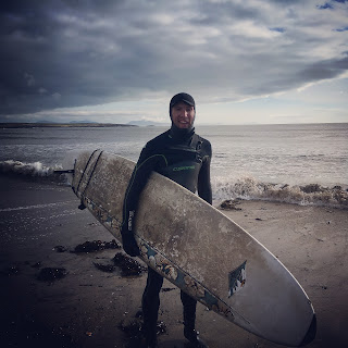 Somewhat unexpectedly, we noticed that there was a bit of swell heading to the beach today, so made a quick plan to go and get my first wave of the year. Clare has already braved the cold waters a few times since Christmas, but I had yet to have been in the right place at the right time to join her.