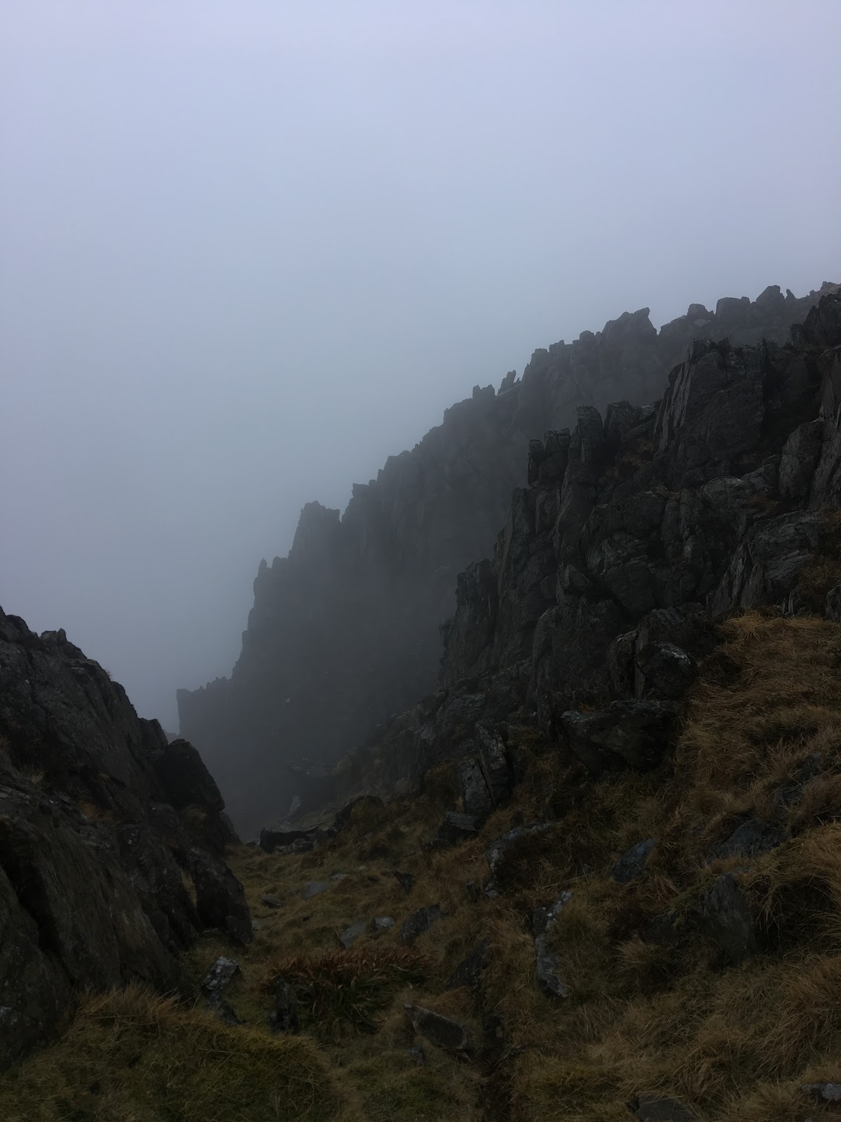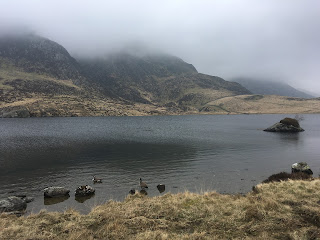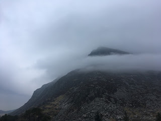 A misty and murky day, with a cold feel, didn’t put off my team of students today as we linked up lots of scrambling terrain above Llyn Idwal.