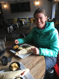 We arrived at our destination – a pub called The Slate, ready for a big feed at 14:20. Unfortunately, they’d stopped serving food at 2pm! Nooooo!… We spent a few minutes discussing whether to try and make it back to The Cottage on an empty tank, or maybe getting some crisps to tide us over. We must have looked really tired and disappointed as the barmaid came back over to us (after telling us that the kitchen was closed) and said that the chef was waiting for a lift home but would rustle us up a quick sandwich if we wanted! What a result! What hero! We didn’t decline!