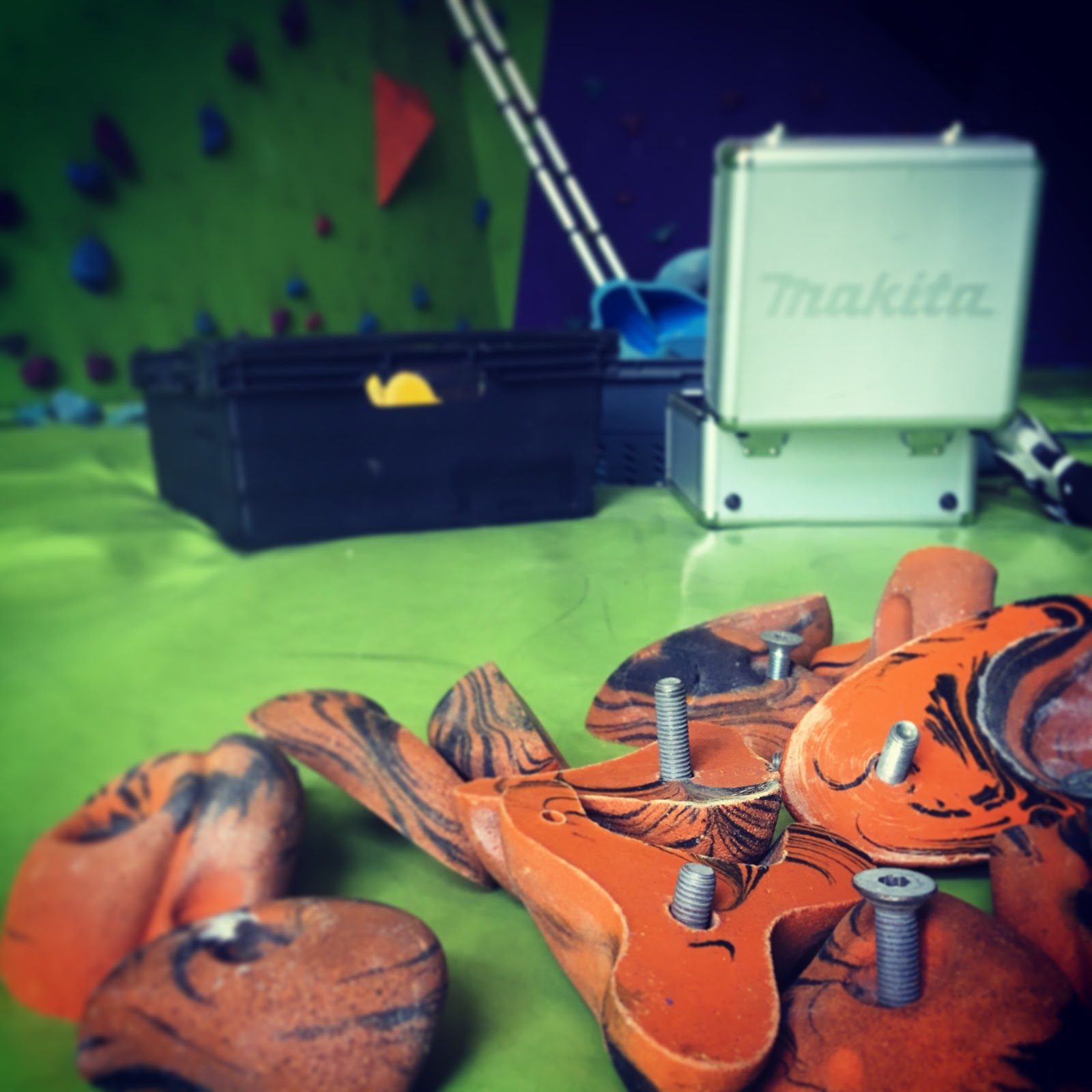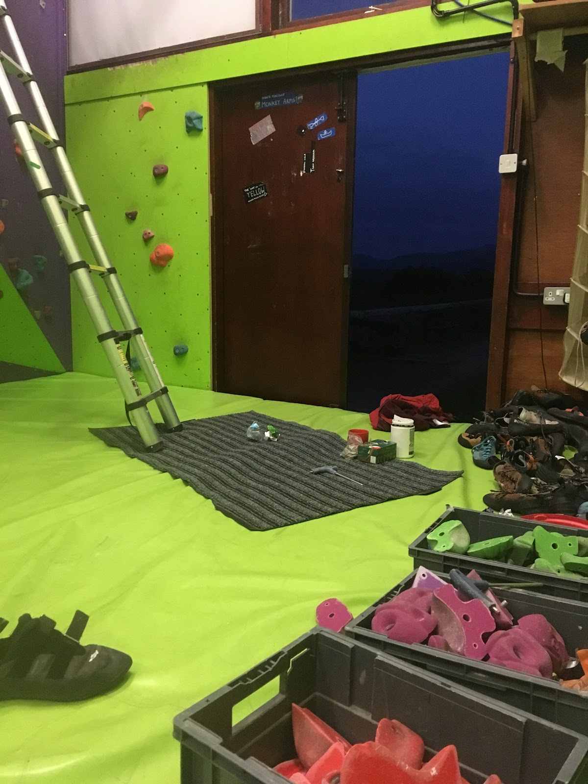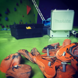 Had a very late night last night, (after returning from the Gorge Walk), stripping all the holds off the bouldering wall – and then putting them all back on again!