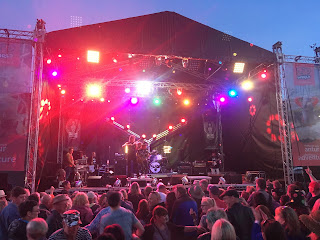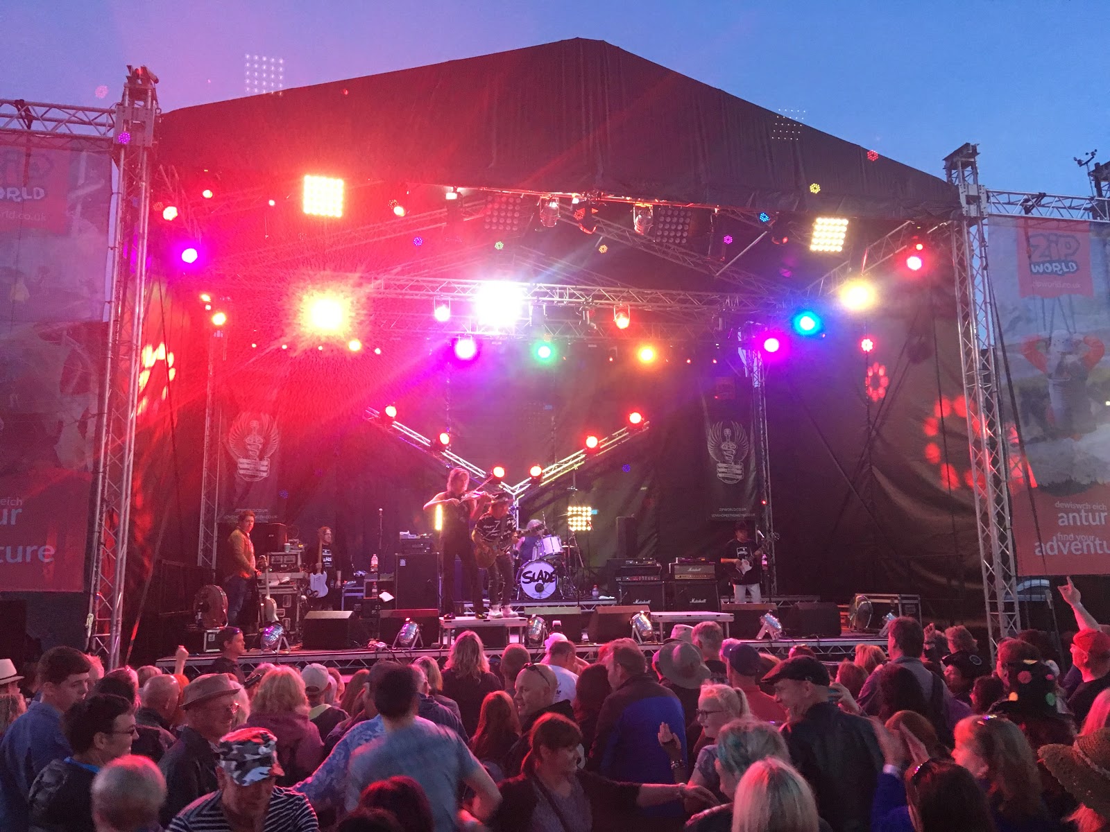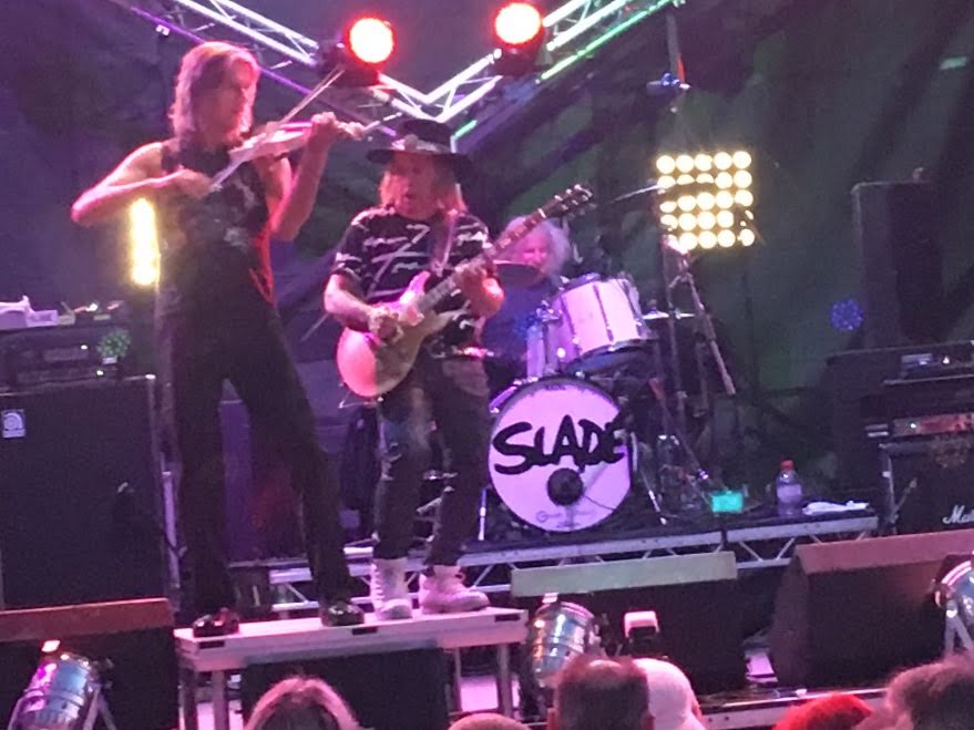 So after getting home, at about 8pm, I walked along our track from The Cottage and soon found myself in the slate quarry – at a music festival! Unbelievable! Mike Peters from the Alarm was just finishing his set and none other than Slade were about to take the stage!