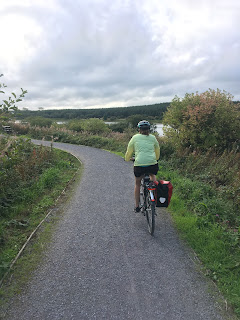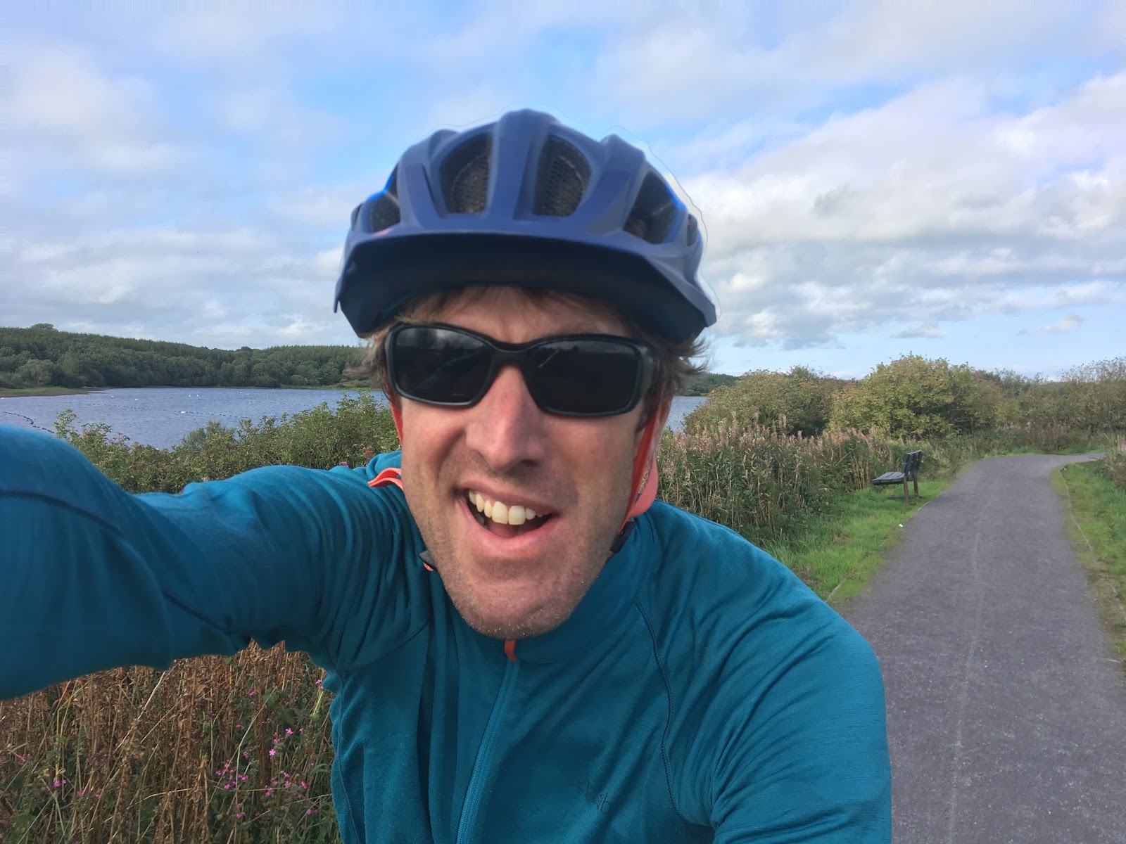 Having traveled up to Llanerchymedd on the 556 cycle route, we joined the Number 5 to return back to the reservoir. The water levels were low as we stopped for a breather by the lake. As we were only out for the day, unbeknown to me, Clare had carried a few ‘luxury’ items with her and produced an ice cold can of drink, wrapped in ice blocks from the freezer! Very refreshing and no cafes needed. We drank it in the sun, before completing the last section which was off-road around the lake shore
