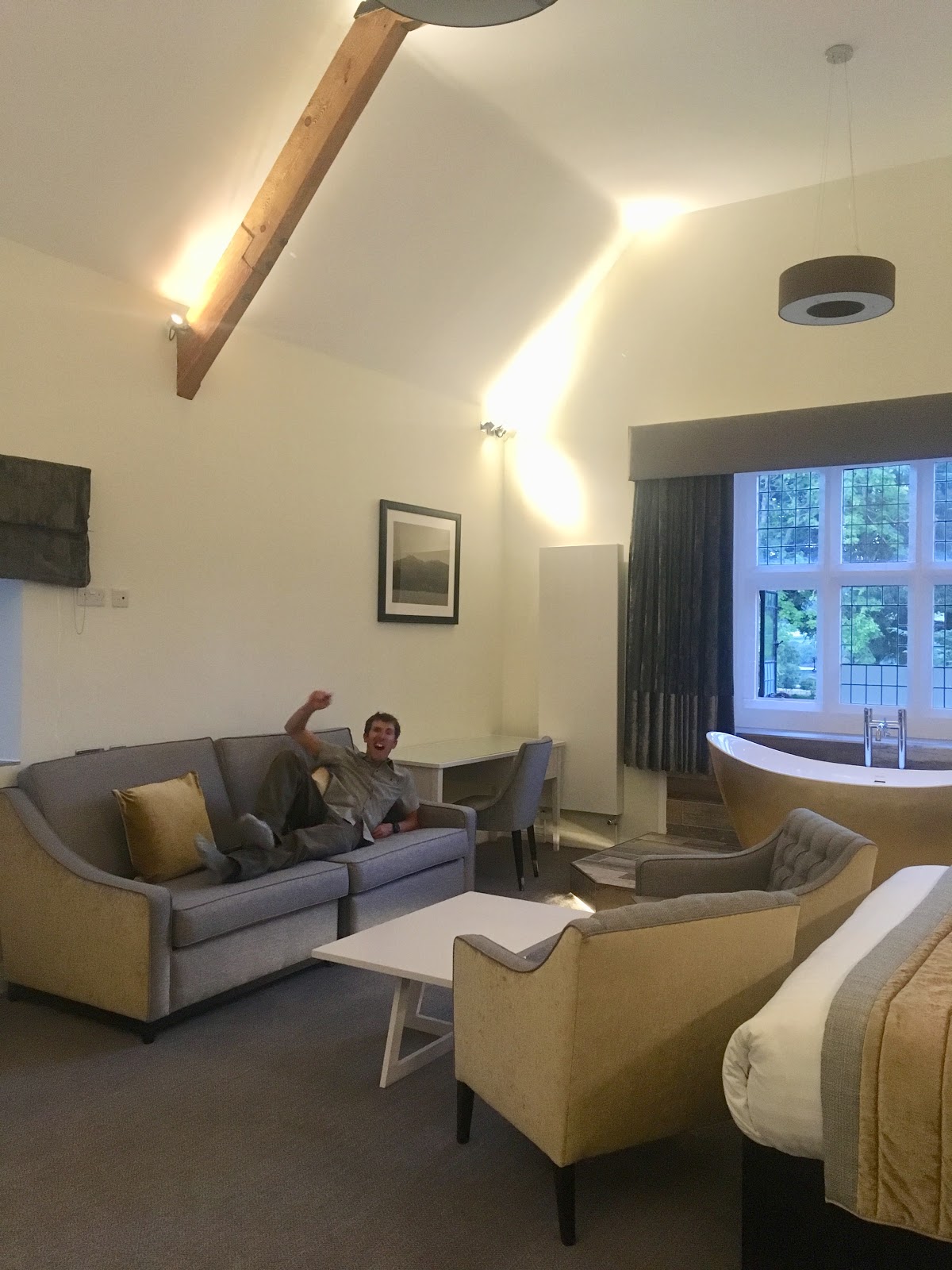 Our room (suite actually!) was incredible. In fact, we quite possibly were the first guests to ever stay there! There was an enormous shower, in the bathroom, multiple sofas and in the window of the main bedroom was an even bigger gold bath!