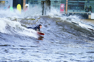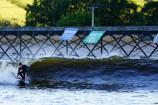 Well, I’ve made it through the thirties. The forties got off to about a good a start as I could of hoped for considering it was my first full day back at work for a while. At The Cottage, I had a few cards and pressies over breakfast, before embarking on a non-stop, jam-packed day of meetings, discussions, and general start of term business. However, Clare came to pick me up at the end of the day and whisked me away into another world! First stop was the artificial surf wave at Surf Snowdonia in the Conwy valley. It’s basically a man-made made lake with a buldozer that runs through the middle of it to create a wave that you can surf. The weather was glorious when we arrived, but by the time we had our wetsuits on, the shadows had crept across the valley.