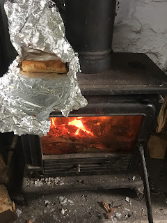 We also had some sausage rolls to heat up on the stove, so that we could end not only the warmth from the fire, but also a hot lunch too!