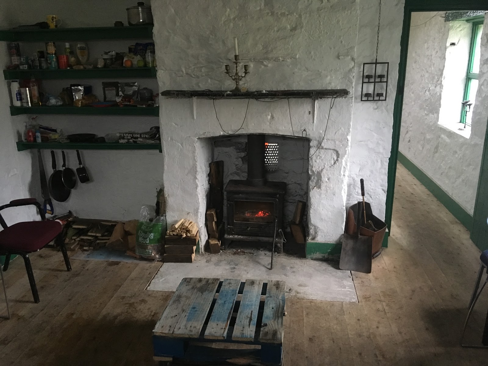 We were all delighted to see the bothy come into sight and draw closer as we scrabled through the tussocky long grass. During the summer a work party of volunteers had spent a month putting in new floors and a sleeping platform and generally smartening the place up. We were carrying fire wood so quickly set about getting the place (and us) warmed up.