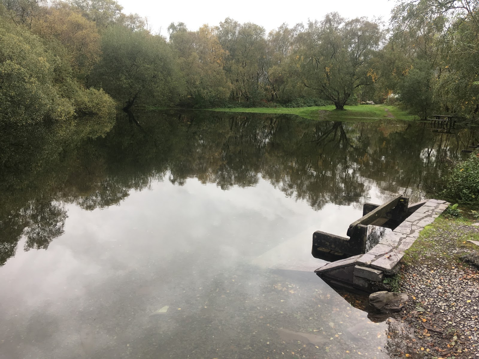 After the damp start to the day, the lake was nice and calm and considerably bigger than normal since the rain had stopped falling, with the picnic benches all half submerged.