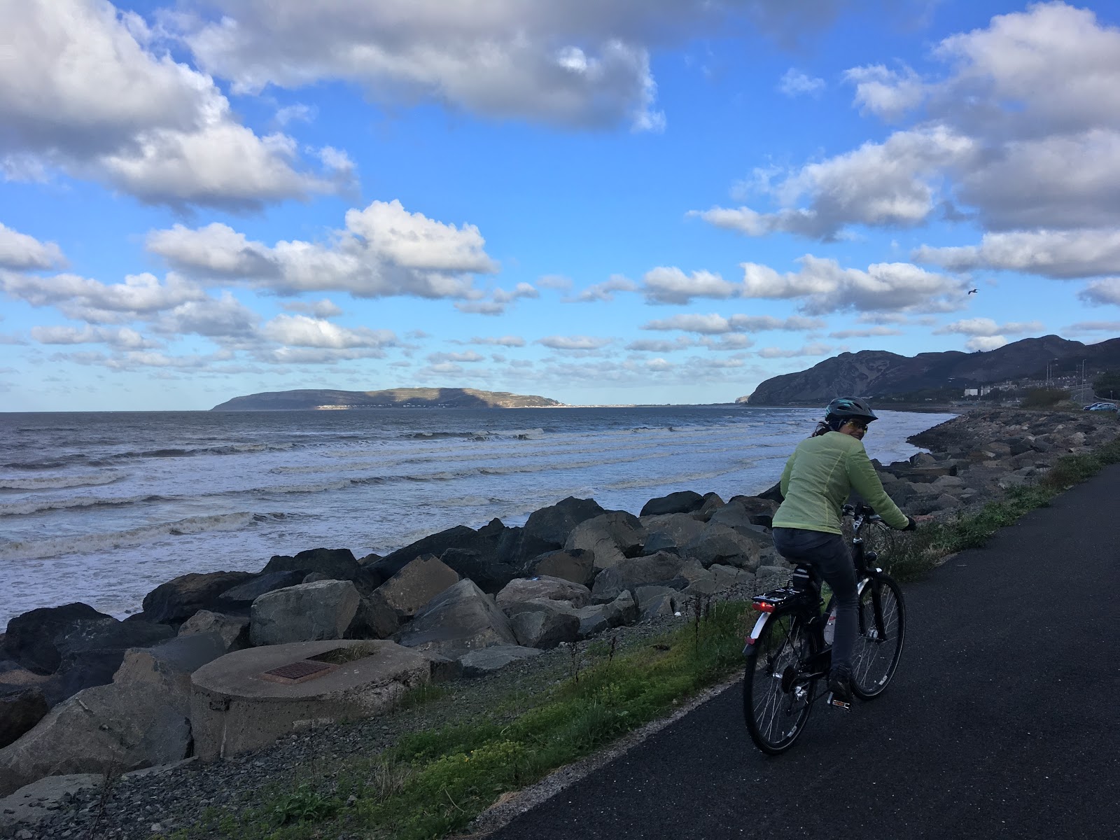 We took the bikes in the van to Abergwyngregyn, where the cycle route begins and enjoyed very nice ride along the coast. Admittedly the baltic headwind did cause my nose to freeze and my eyes to water, but on the whole, I’d say I enjoyed it! There were almost lines of surf waves on the north coast beaches.