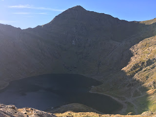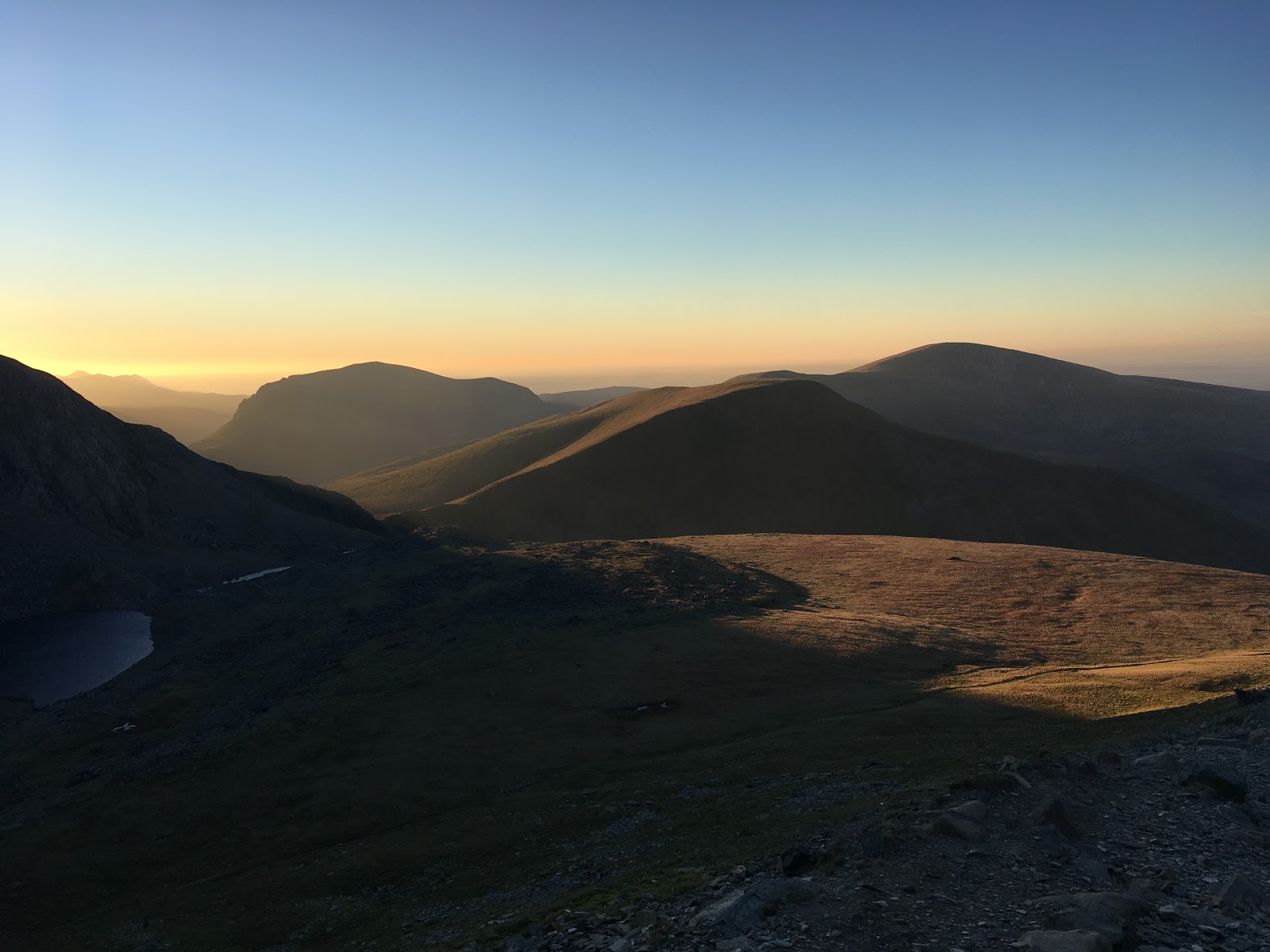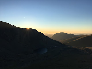We didn’t get an early a start as we’d hoped for, but were well equipped for the coming darkness as the sun set behind Cloggy on our way down the mountain. With a bright moon rising up behind us though, it turned out we didn’t actually need to use our headtorches.