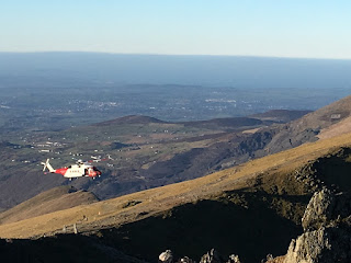 As we made our way down the ridge from the summit, the helicopter came to pick up a walker who had an injured leg. We were impressed by how it could hover in such conditions. A slow and steady descent got us back to the village at around 18:00, where Pete’s Eats provided a well-earned feed.
