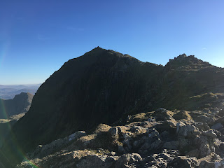 The photos all look benign, but it’s hard to convey just how windy it was on the exposed areas of the ridge. People were down on all fours at times and we saw two bobble hats fly up over the summit and off down the other side of the mountain.