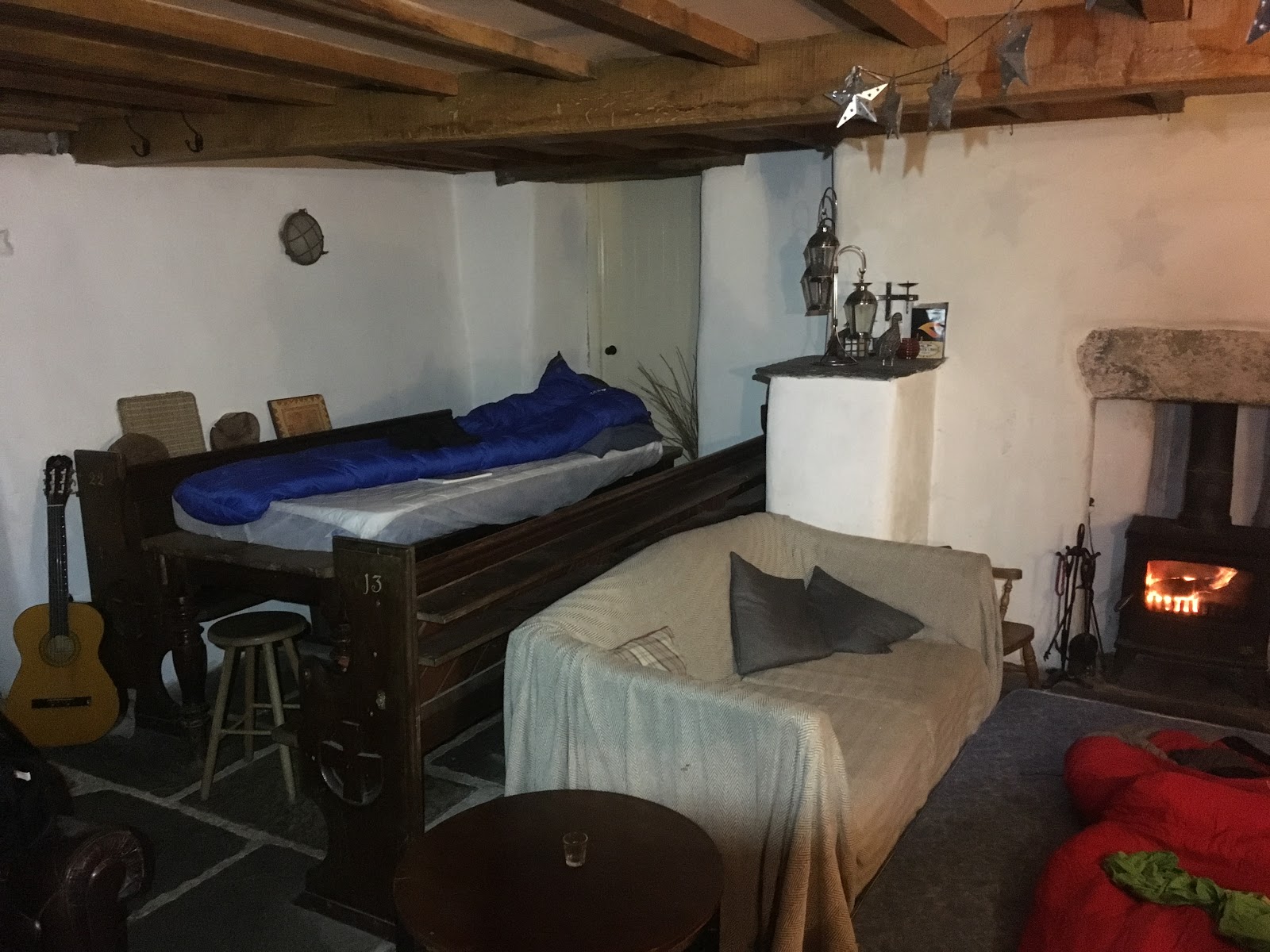 On a climbing trip in 2011, Clare and I had had a look around the camping barn below Wallowbarrow crag and I thought it would be a great place for a little expedition group such as this, so I was delighted to find that it had been booked by the team for us. There’s an ‘alpine bunk’ style sleeping area upstairs. Aled and I opted for the downstairs option; I took the table top and he the fireside. I slept soundly couldn’t even be woken by the persistent Cockrel that got everyone up at 6am! Or my alarm an hour later for that matter.