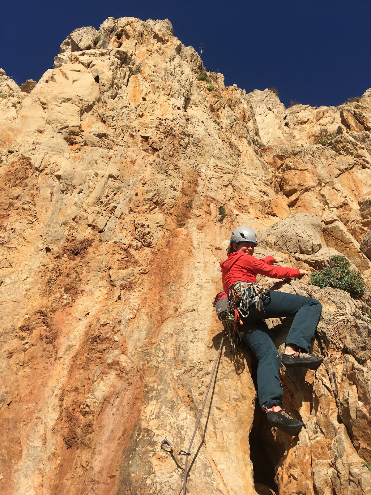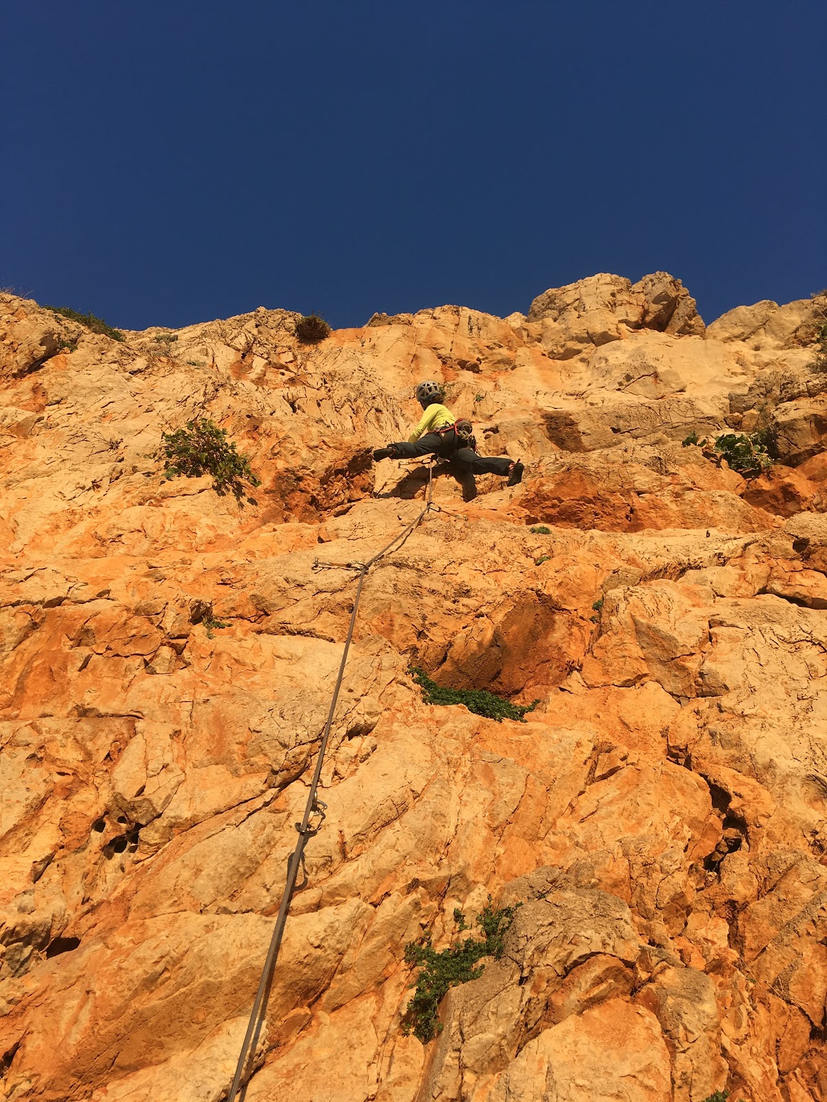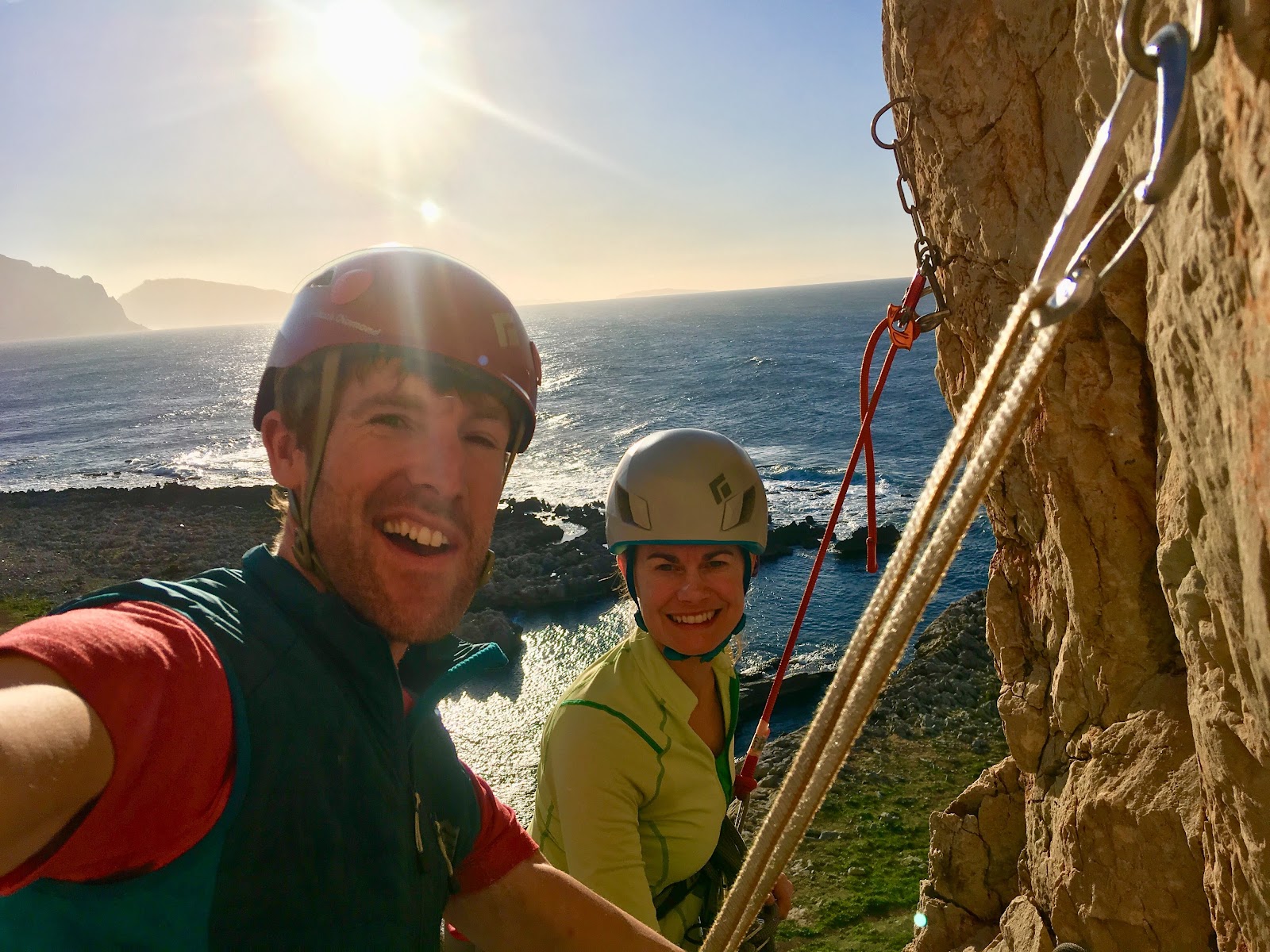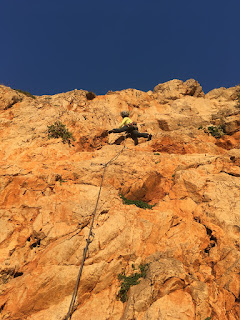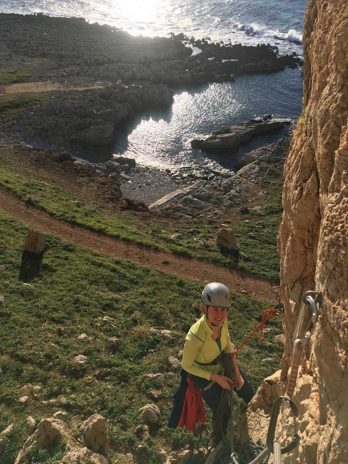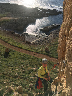 We chose a two pitch route and were soon hanging from belay bolts above the sea, revelling in the situation and the feel of sun on skin.