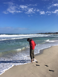 It didn’t take long to get down to the beach, where we dipped our toes in to test the temperatures. It was very wind and there were some good waves rolling in, so not so appealing for a Christmas dip.