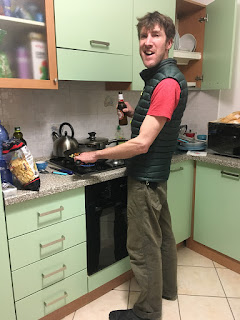 By now, the sun was fully on the balcony, so we brewed coffee and enjoyed a slow second breakfast before organising our climbing kit.