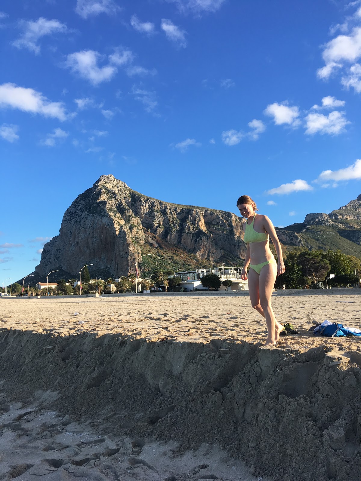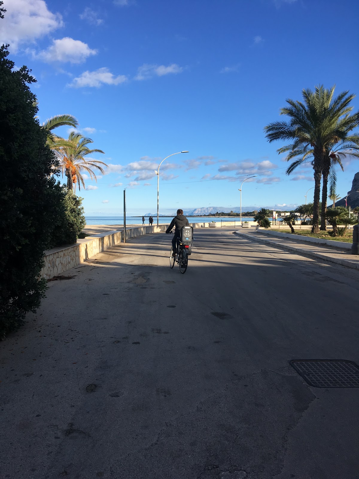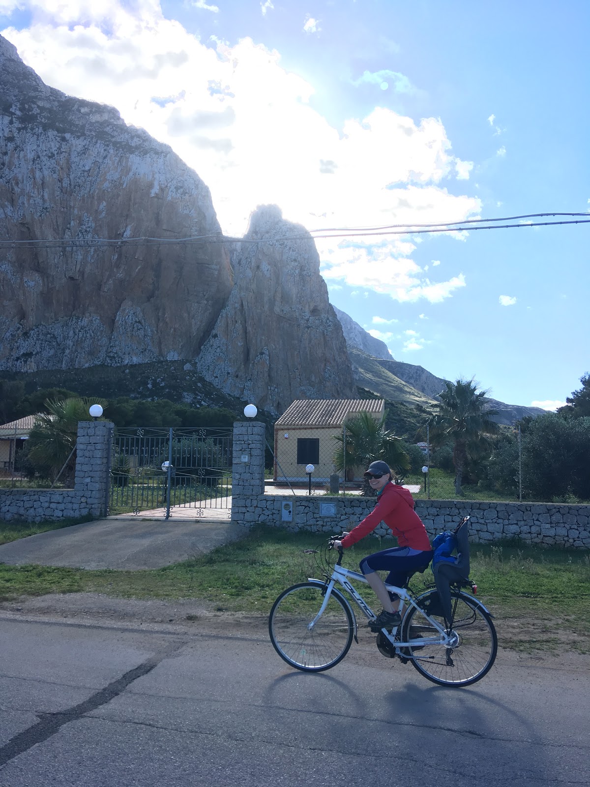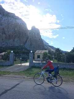 The rusty, dry chains creaked, the brakes rubbed and we dared not change gear, but it still felt great to be moving in the morning sun under our own ‘peddle power’. By bike, the beach was only a minute away, so we turned north and followed the coast under the dark peaks of Monte Monaco.