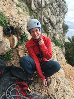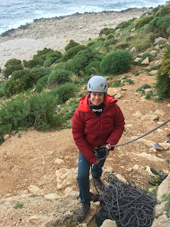 All a bit overcast in San Vito this morning, so took our time leaving the flat while the rain drops fizzled out. Walked down to the ‘Bunker’ area of cliffs, down by the sea. It felt much different with a strong breeze blowing and noisy waves crashing onto the rocks. We climbed some amazing long, vertical routes; 30 to 35m of continuous climbing really allows you to get absorbed into the task at hand. Lovely stuff!