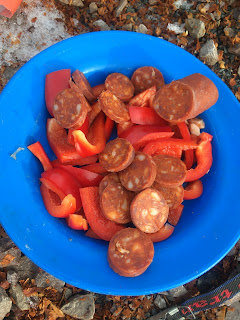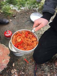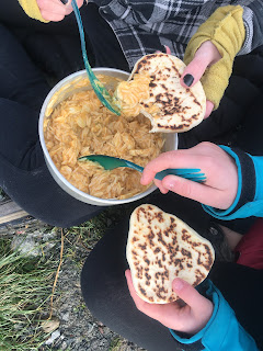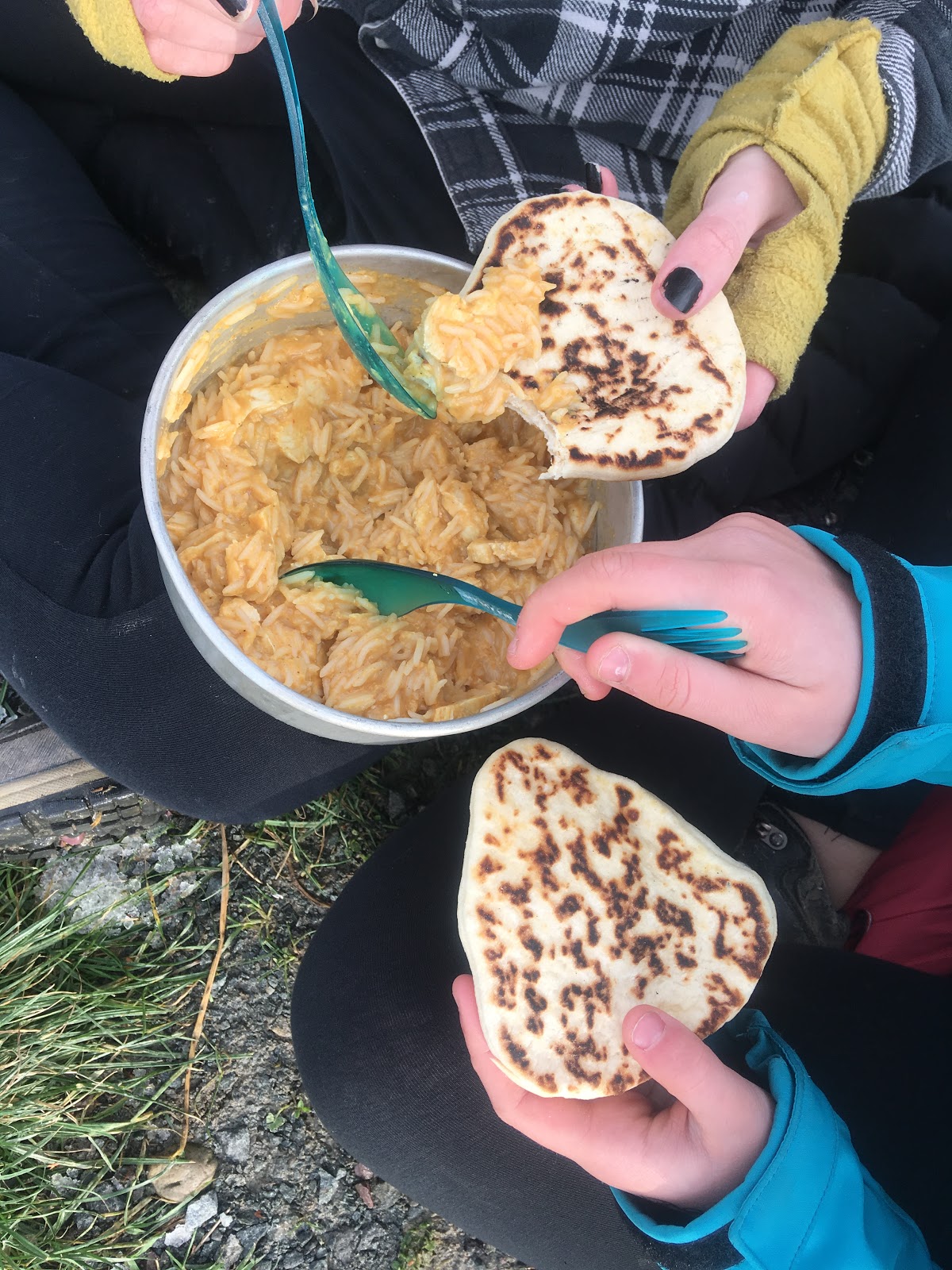 Bitterly cold today. Luckily, I was tasked with a day of teaching camp cooking! – Specifically, how to make a decent hot meal on a single gas burner, in preparation for this summers Duke of Edinburgh’s Award Expeditions. With hot drinks to hand all day, we survived and ate in style, cooking by the sea near Conwy.