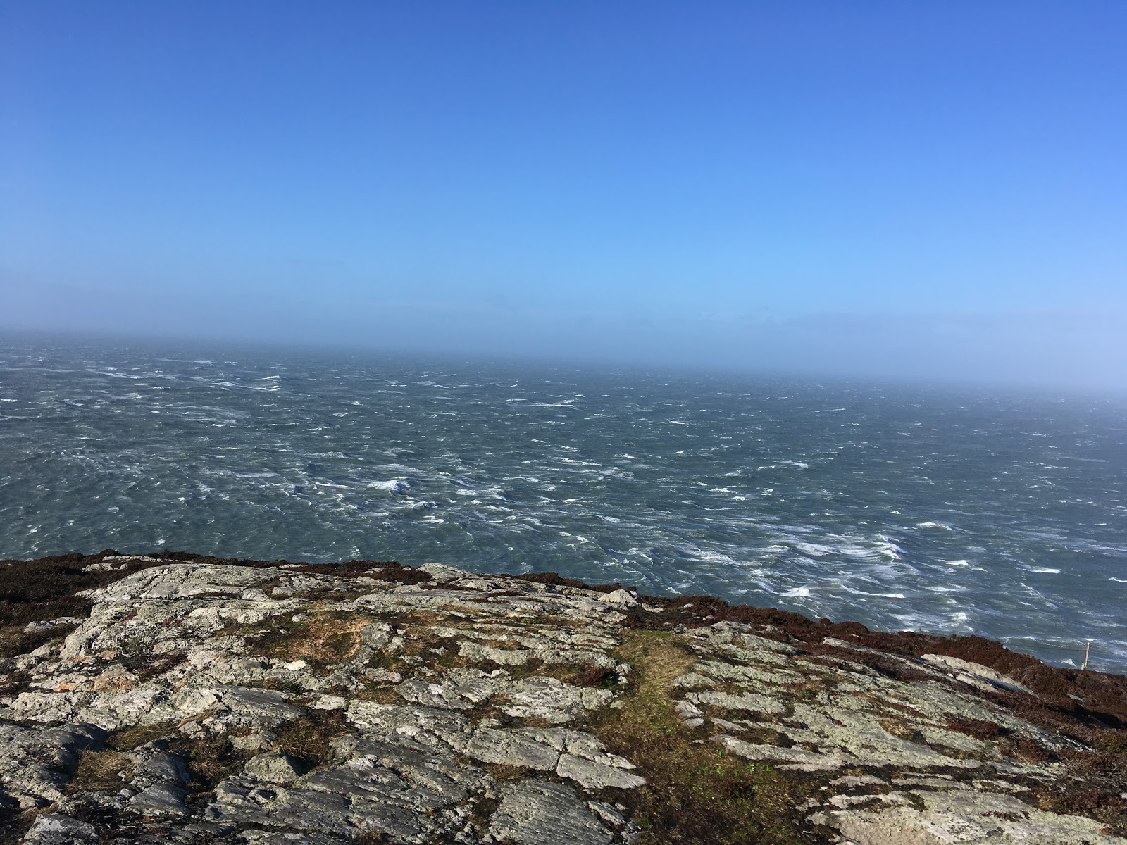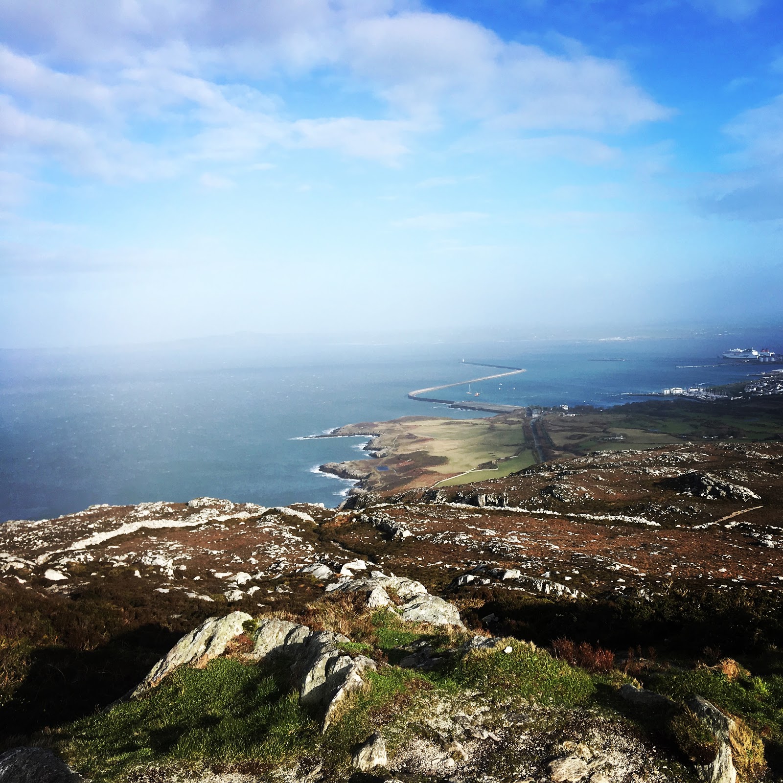 The subsequent hike up Holyhead Mountain started off nice and sheltered, but on the summit, we could barely stand! The wind against tide out to sea was pushing up enormous waves, the spray of which came right up the cliffs and soaked us in a momentary rainbow.