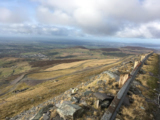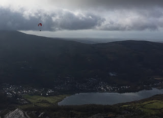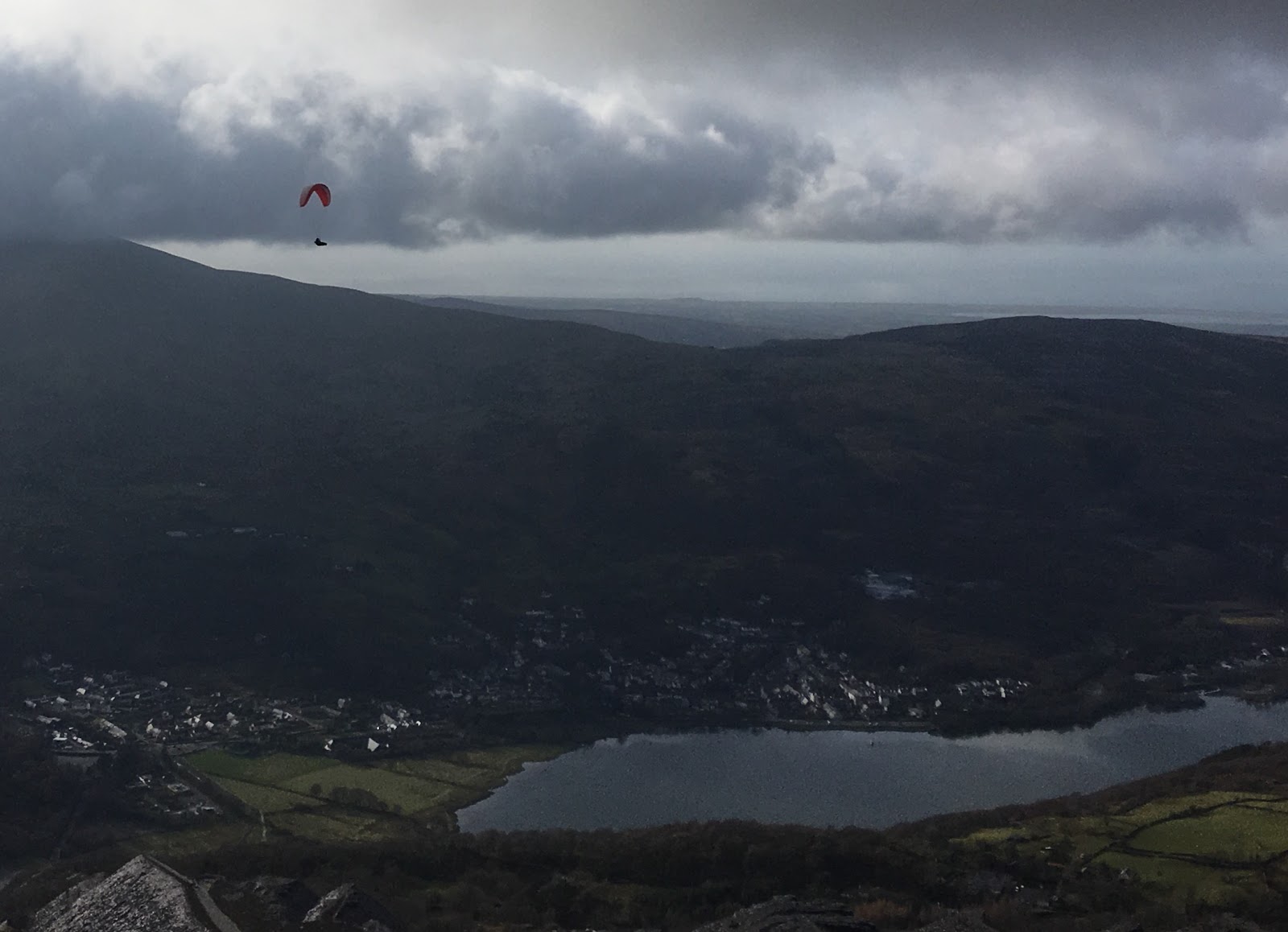 Instead of climbing the peak, we chose to follow the access road up to the top of the quarries to the Surge Pool for the electric mountain power station. I’d never actually taken the turn off before, so it was great to get some new views from an area we frequent so often. At the end of the tarmac, we munched sandwiches, while watching some paragliders.