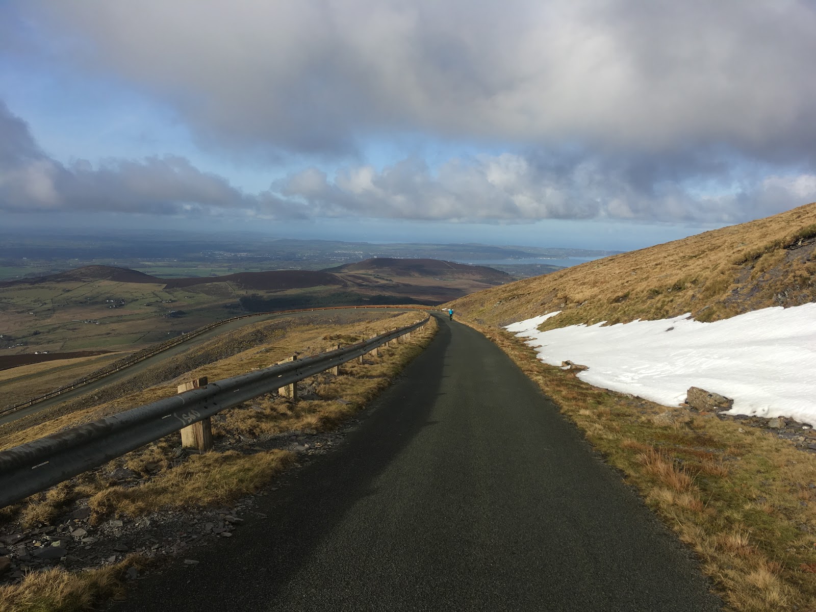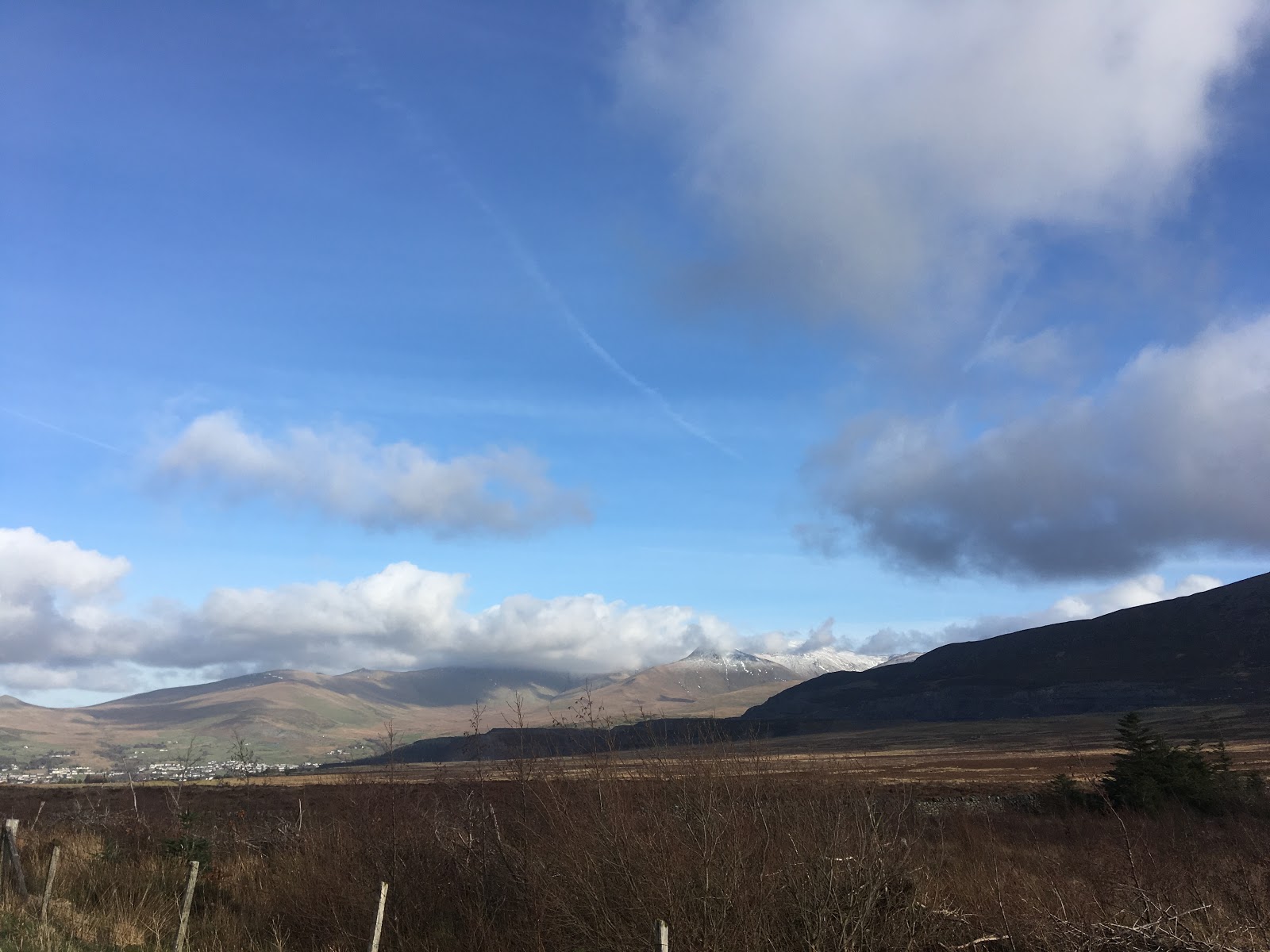 As we rode over the moors back to The Cottage, the clouds cleared to reveal a slight dusting of snow and a beautiful panorama of the Carneddau. Lovely. Pancakes and coffee provided the perfect apres peddle…