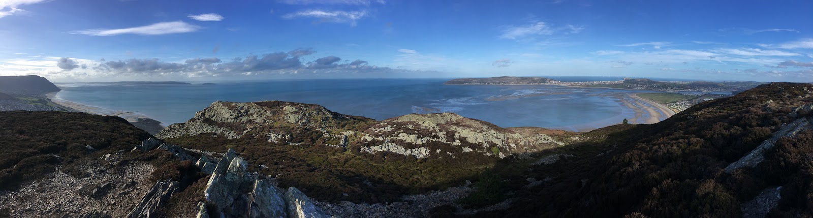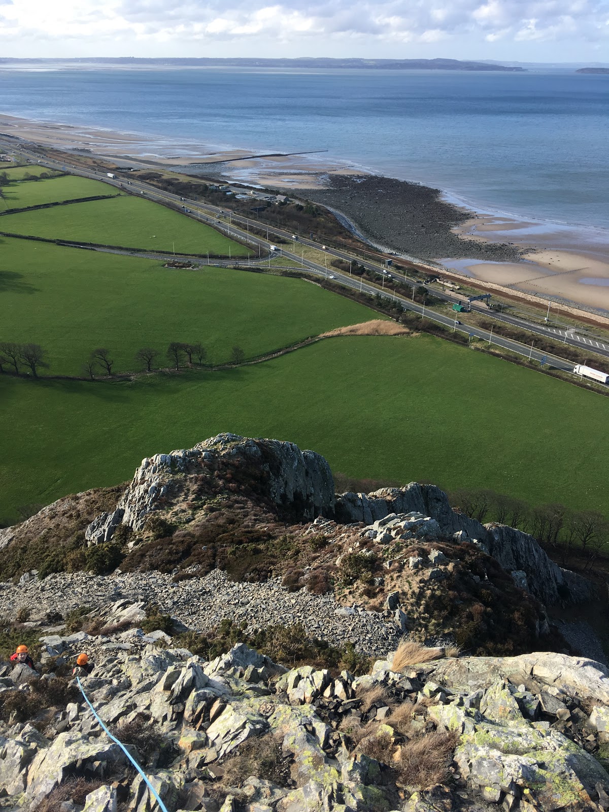 In glorious sunshine, we got dropped out near Penmaenmawr, where we made a complete traverse of Conwy Mountain, via the A55 Arete.
