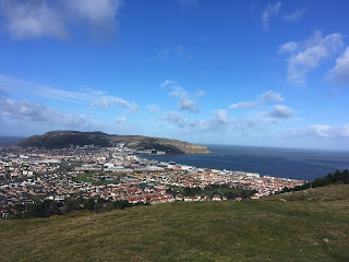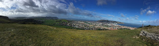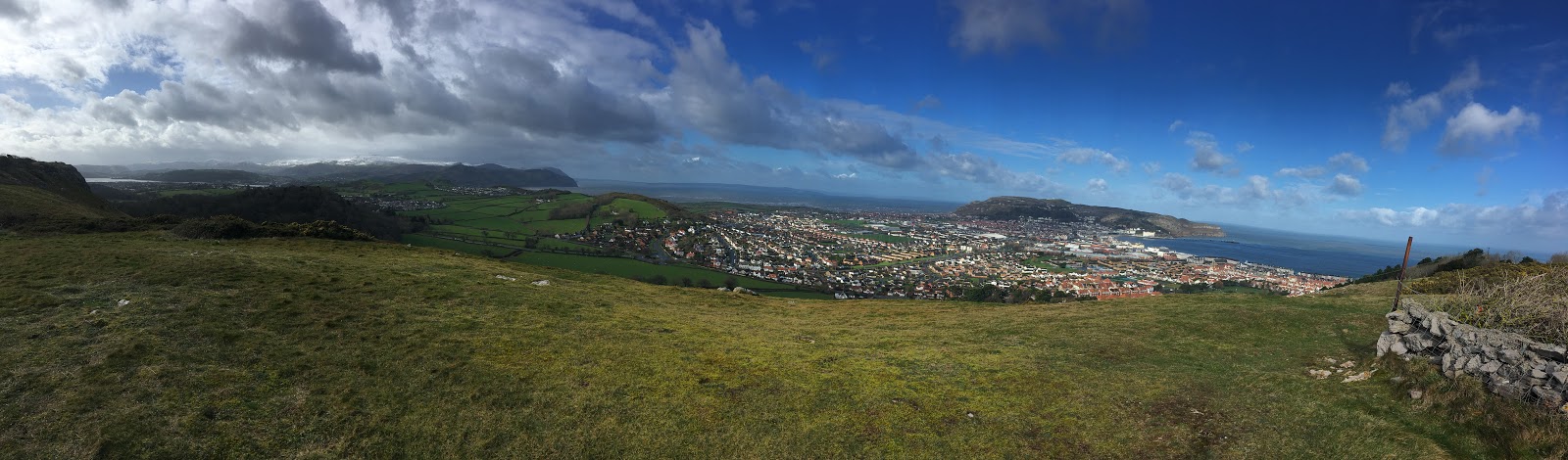First thing this morning, I ran up and over the hills above Llandudno to set out an Orienteering Competition course. Fresh snow had fallen in the mountains and there was a bitter wind chill and I jogged along in my shorts and wooly hat. At least the sun was out though.