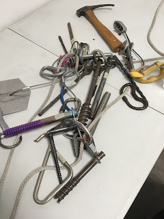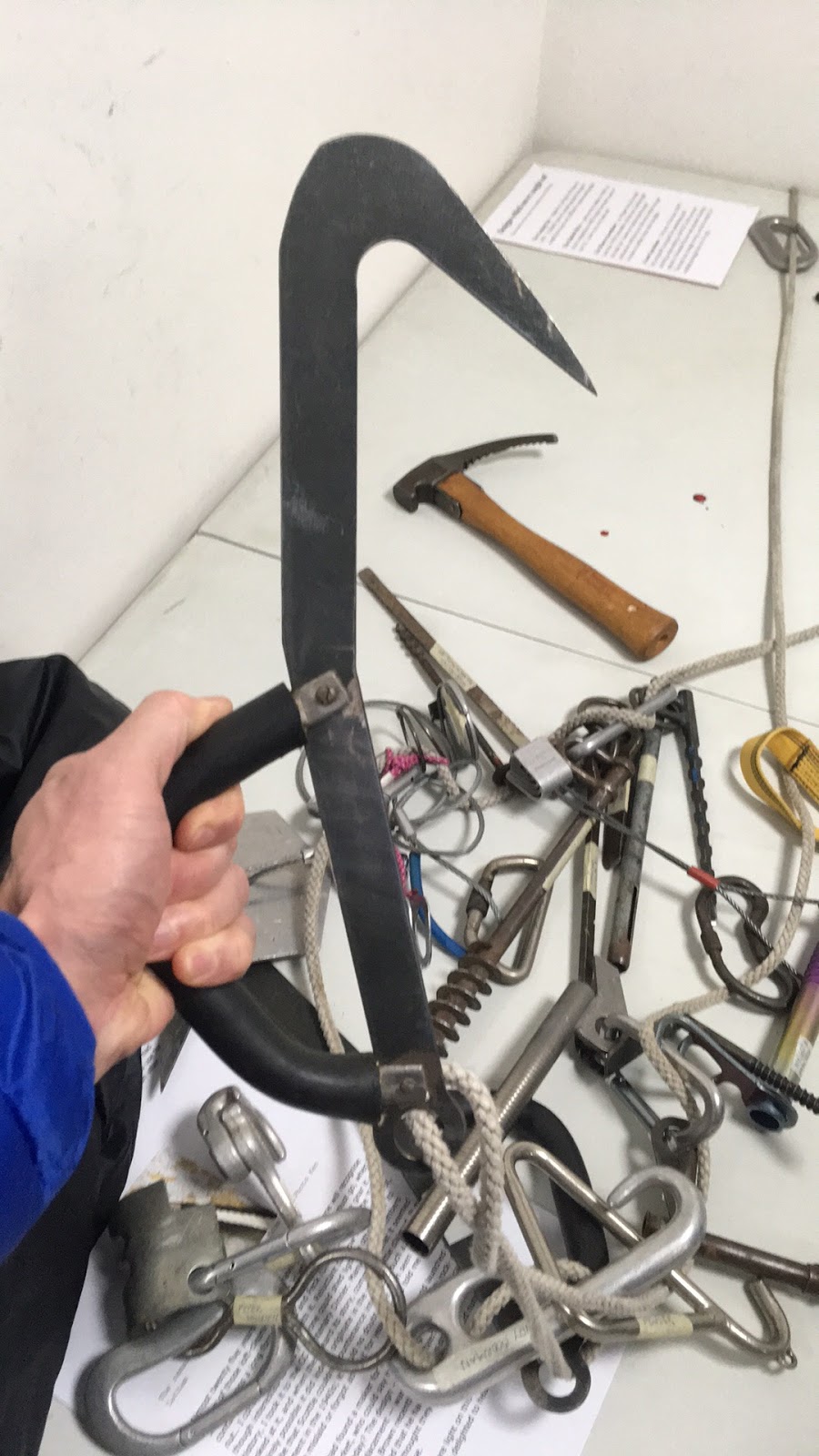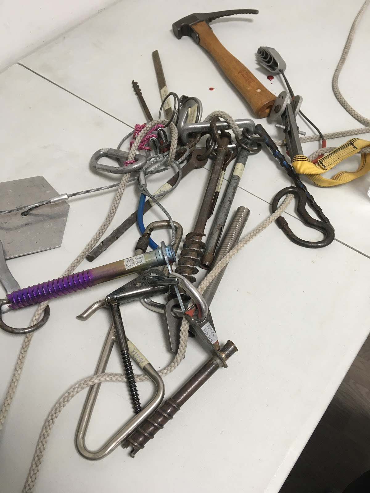 Climbers don’t know who luck we are these days! After a day of kayak coaching, I dashed over to the Beacon Climbing Wall, to hear a series of presentations about the development of climbing gear. There was a fascinating collection of all kinds of handmade, homemade and manufactured climbing kit, dating back over many years and some horrifying stories and video clips.