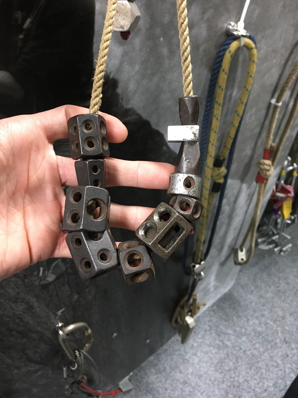 It was really interesting to see how things have developed and how much safer things are today – there’s no way I’d consider hanging from a cliff using a good portion of the kit on display!