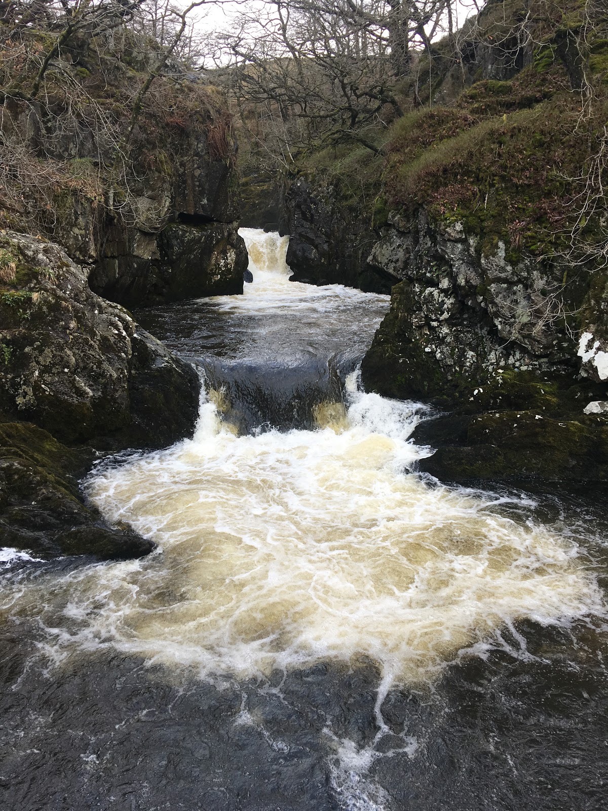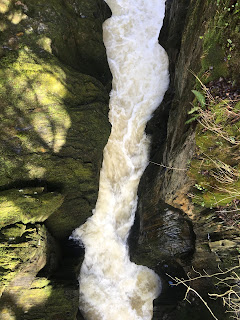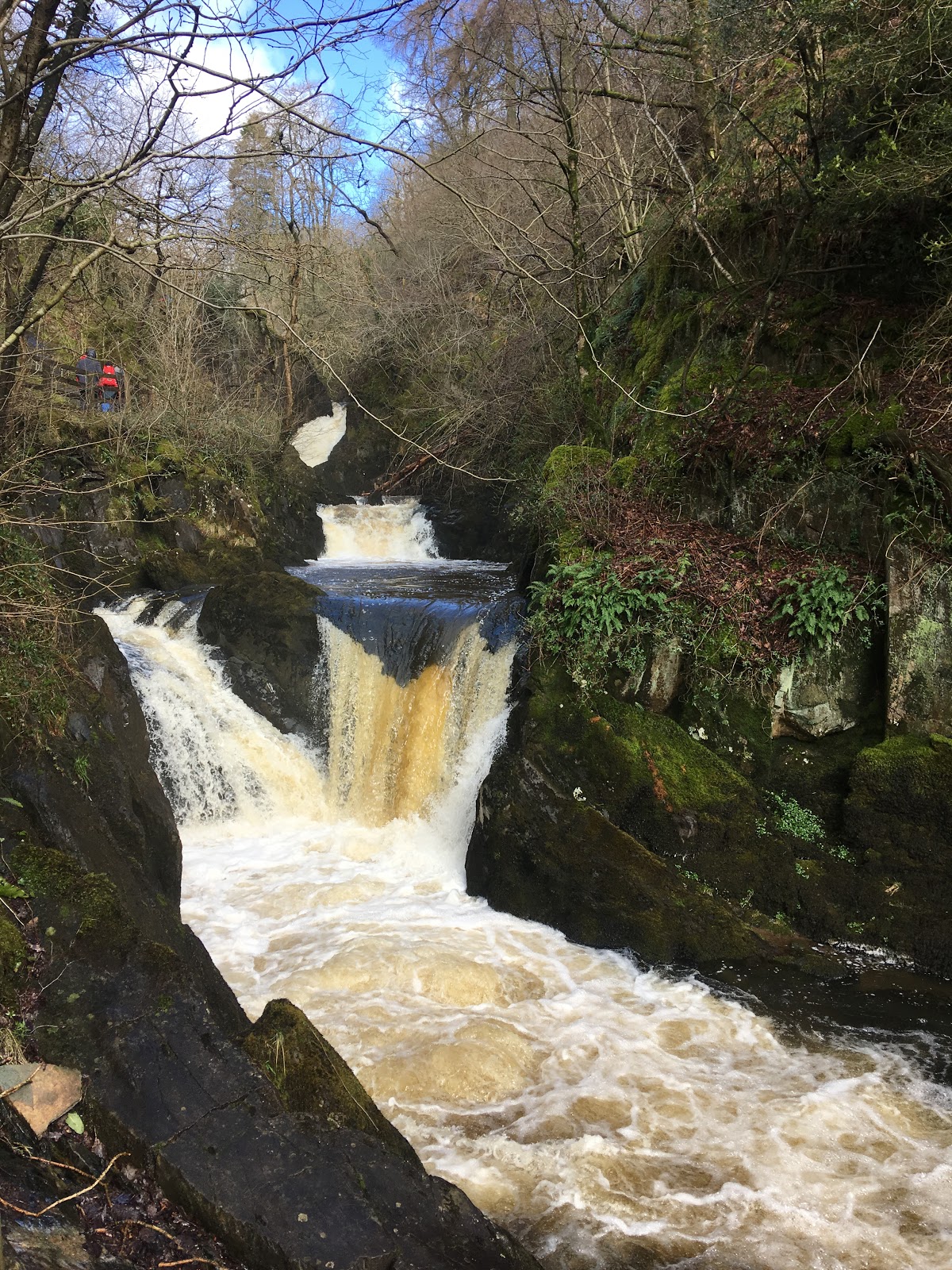 By Sunday morning, the water levels had dropped and we were free to drive away. We chose to do a loop of the Ingleton Waterfalls as the water levels, would give some great sights.
