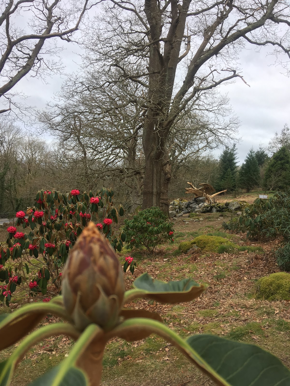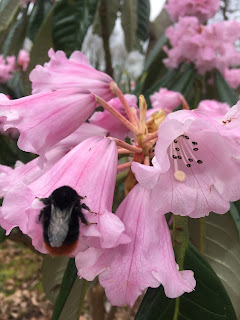 As well as now being home to a fine wooden dragon, the area has also had some woodland management and clearance. All sorts of trees and shrubs have been planted and gorse bushed cleared to reveal some colourful Rhododendrons, which seemed to be popular with the bees.