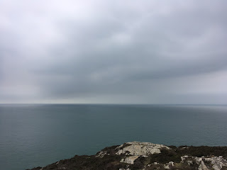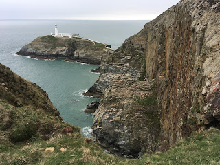 We got to the end of the road at South Stack before too long and before too many raindrops started falling. It was warmer than six years ago, but we preferred the blue skies, even if it was baltic back then!