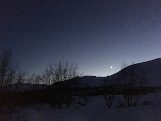 Enjoyed a few minutes of peace and quite having a sauna by myself at the end of the day. Went out and washed off in the snow, after spending twenty minutes sweating away while staring out the window up a remote valley. Blissful times.