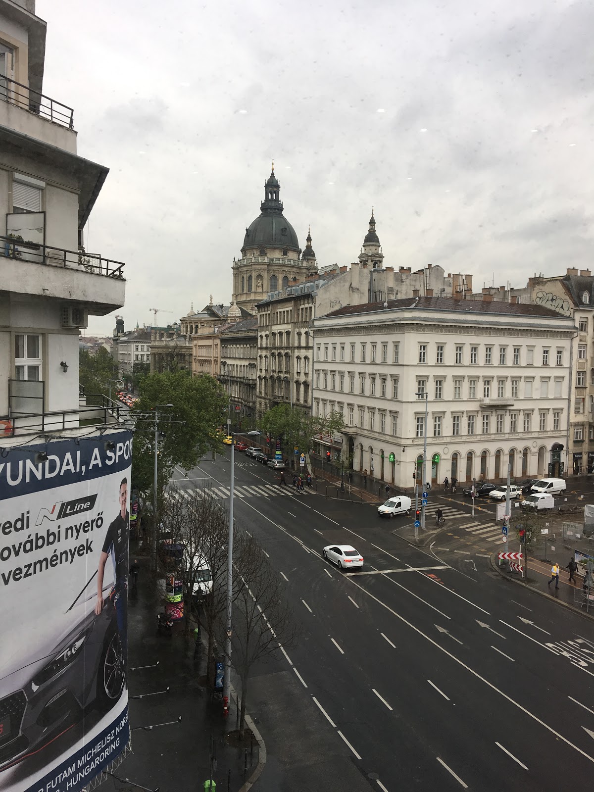 The apartment is enormous and on the top floor of a big building, overlooking the St Stephen’s Basilica. It was good to get inside from the hub and dry off, but still having the best view of town!