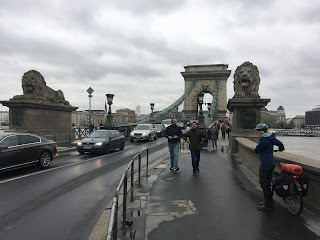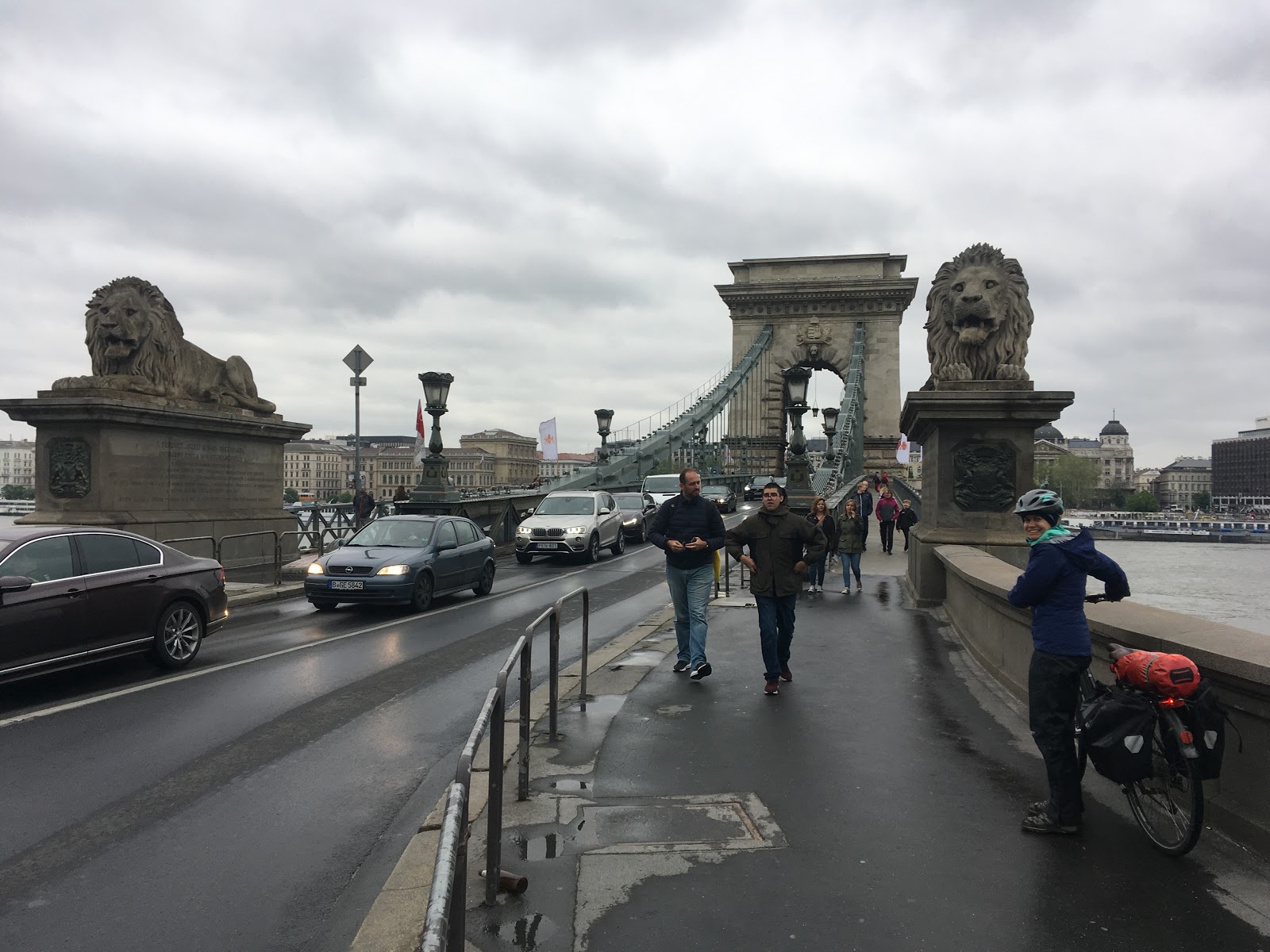 We crossed past the lions that guarded entry to the final bridge of the tour, pushing our bikes towards the busy city centre.