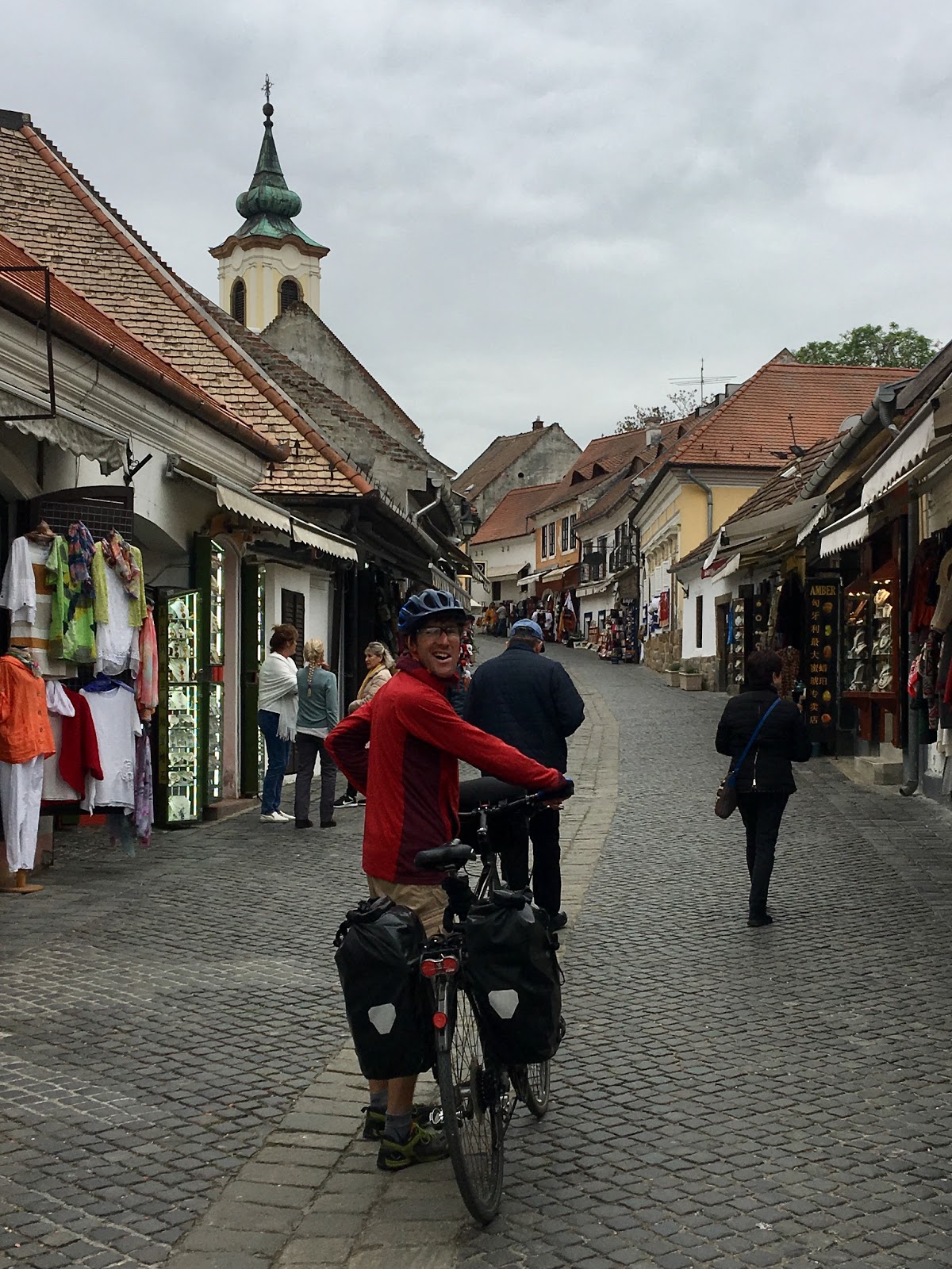 It was a nice ride, along the river banks after a short section on a busy road. After stopping for lunch by a quirky tourist town, the rain arrived.