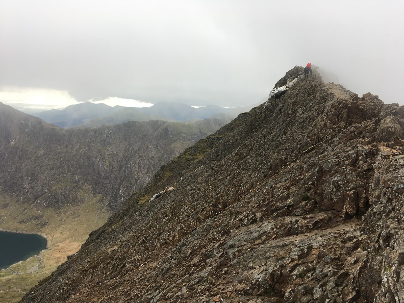 After a bit of debate, we decided to commit to the crossing and were soon embroiled in the task of moving safely and carefully across the famous ridge scramble. Clouds were sticking to the north side, but on the south, we still had some views.