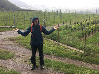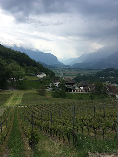 Down in the valley, near Ollon, we quickly hiked up to the cliffs, through the vineyards. Behind us, it was clear that the rain was coming our way!