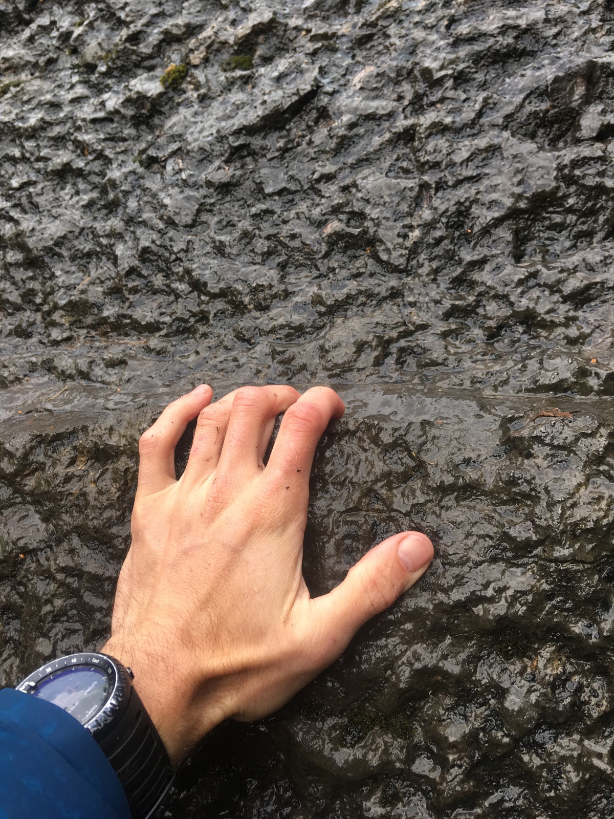 We got three fast climbs up the technical slabs done before the first raindrops fell. I paused before packing away the ropes as it looked like it might ease but. But then the heavens really opened and we got a proper soaking! The group sheltered in the trees, while Emma and I sorted out the gear. Climbing was over for a while now.
