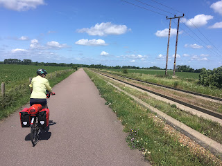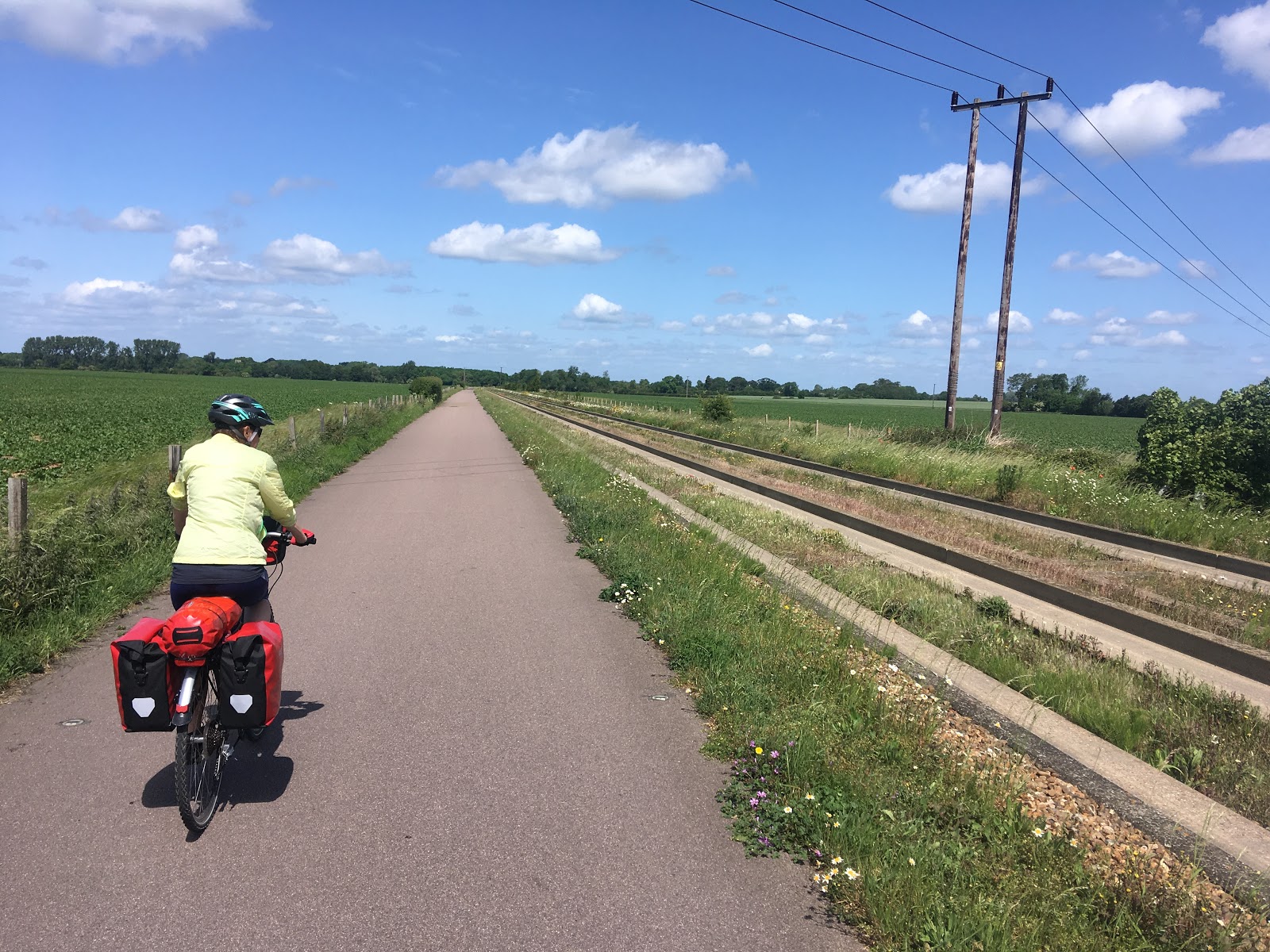 Over the Cam we passed again, but this time heading out of town and along the ‘BusWay’ – a section of old railway that is now serviced by high speed, driverless buses to link Cambridge and Huntingdon.
